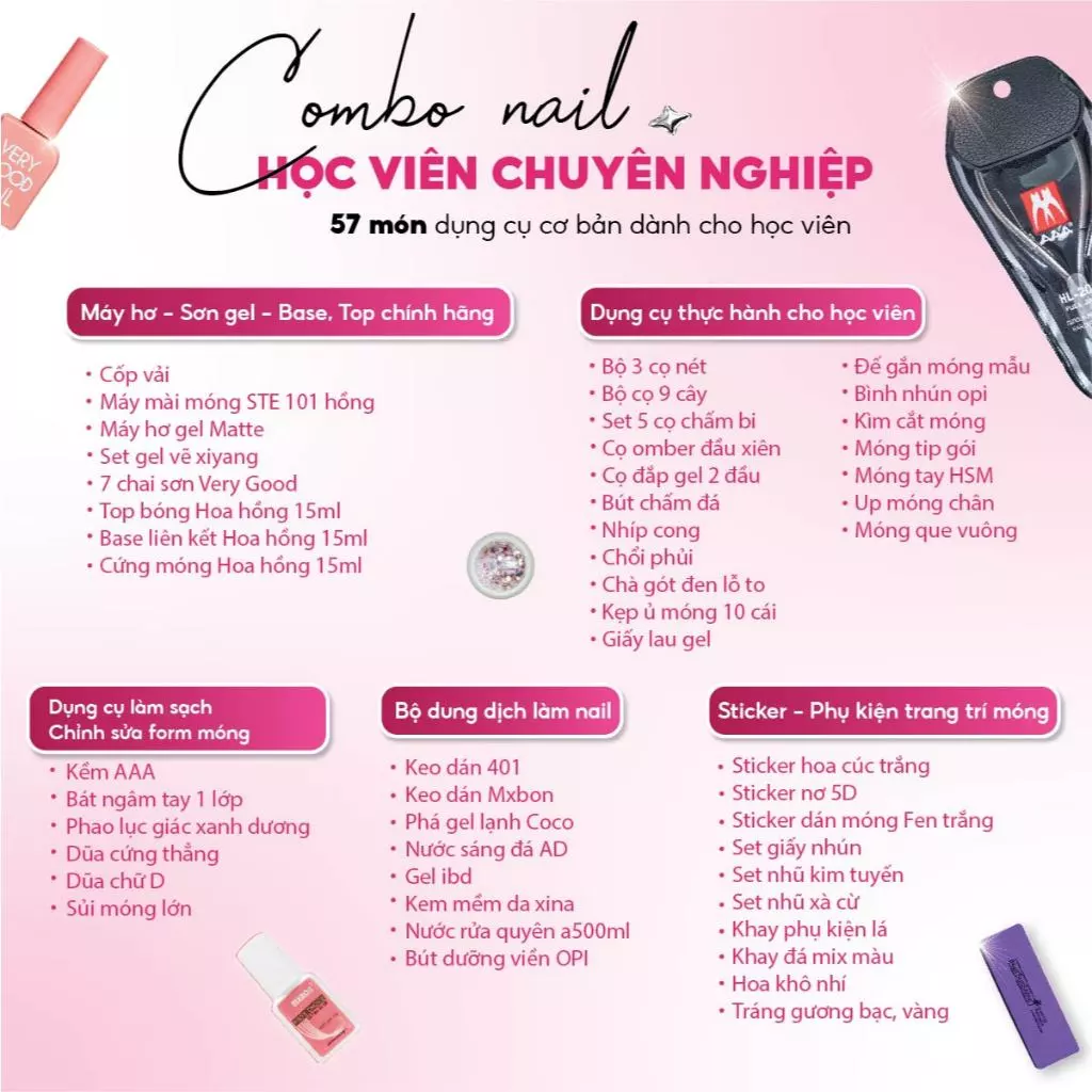 Combo nail đầy đủ chuyên nghiệp – Bộ dụng cụ làm nail cho thợ, salon 57 món NAILBND