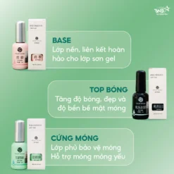 – Base coat Youth Rose (gel liên kết): Dùng để liên kết giữa móng tay/móng chân với lớp sơn gel, giúp cho móng của khách bền hơn.