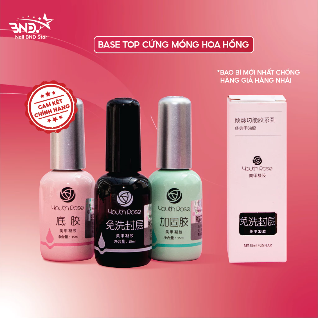 Base top hoa hồng Youth Rose 15ml – Gel liên kết, phủ bóng, cứng móng, top lì chuyên dụng làm nail