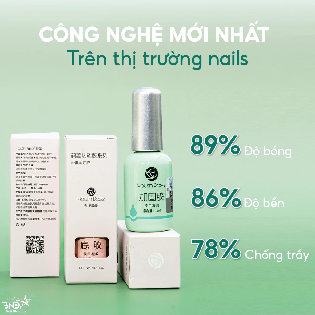 Youth Rose là thương hiệu nổi tiếng trong ngành nail vì sản phẩm có chất lượng tốt, giá thành hợp lí. Sản phẩm của hãng được các tín đồ nail săn đón và tin dùng.