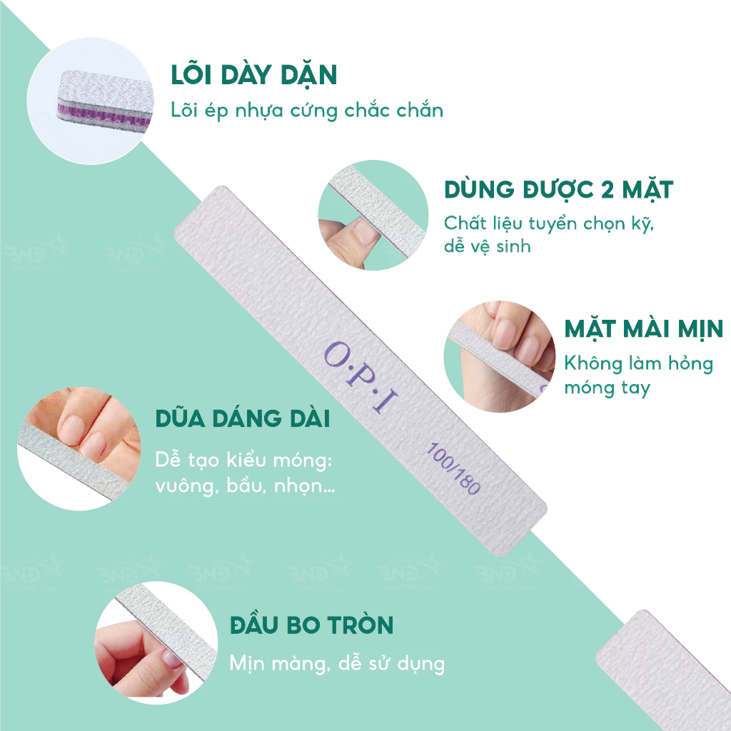 Dũa móng tay OPI là một dụng cụ trong bộ dụng cụ làm móng. Chuyên dùng dũa móng giả trong làm nail (móng nối, móng úp, móng bột, móng gôm gel,…). Dùng được cho cả những người mới bắt đầu học cũng như thợ chuyên nghiệp trong các tiệm nail.