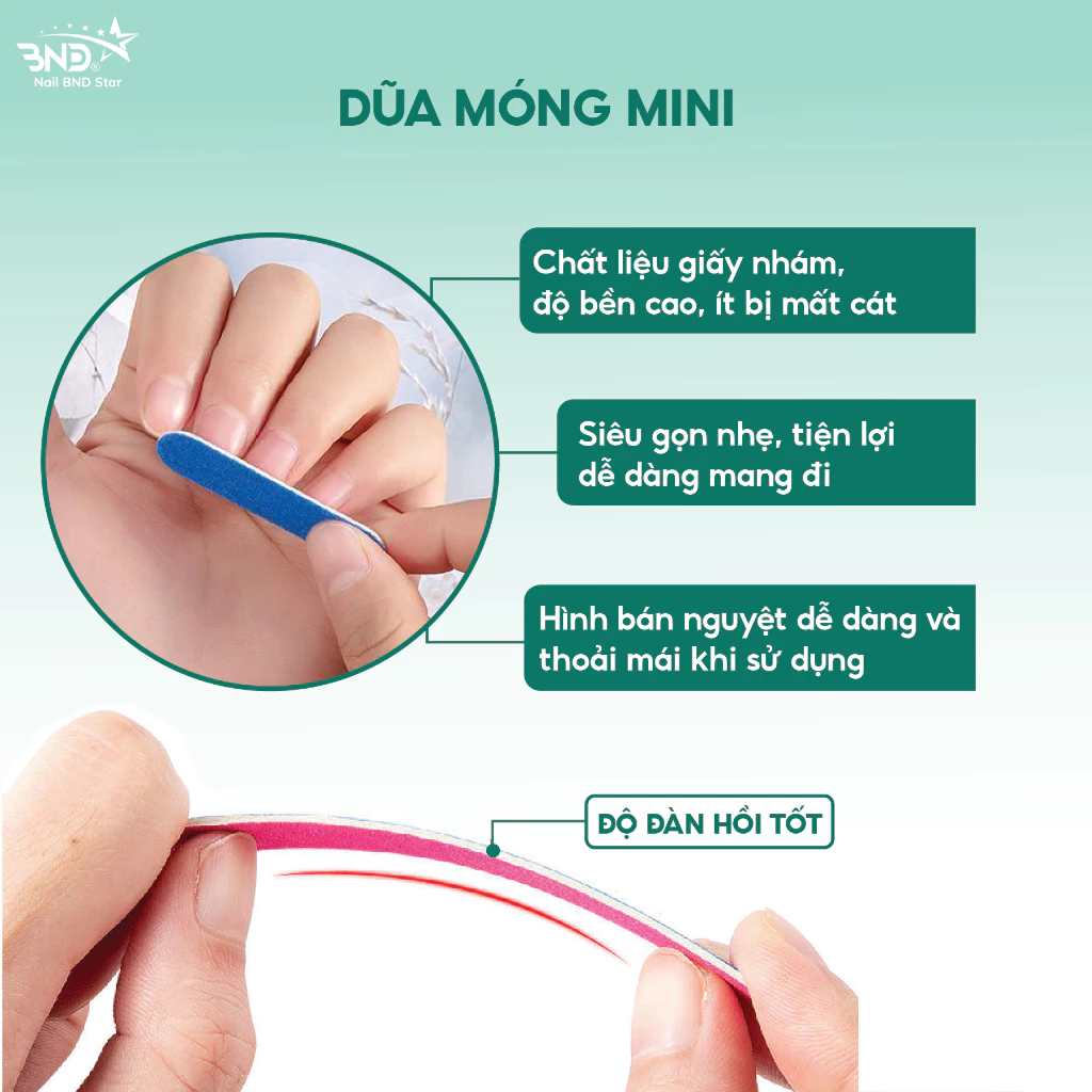 Dũa móng mini có kích thước nhỏ gọn, thích hợp mang theo bỏ túi cùng dụng cụ cá nhân, hộp nailbox