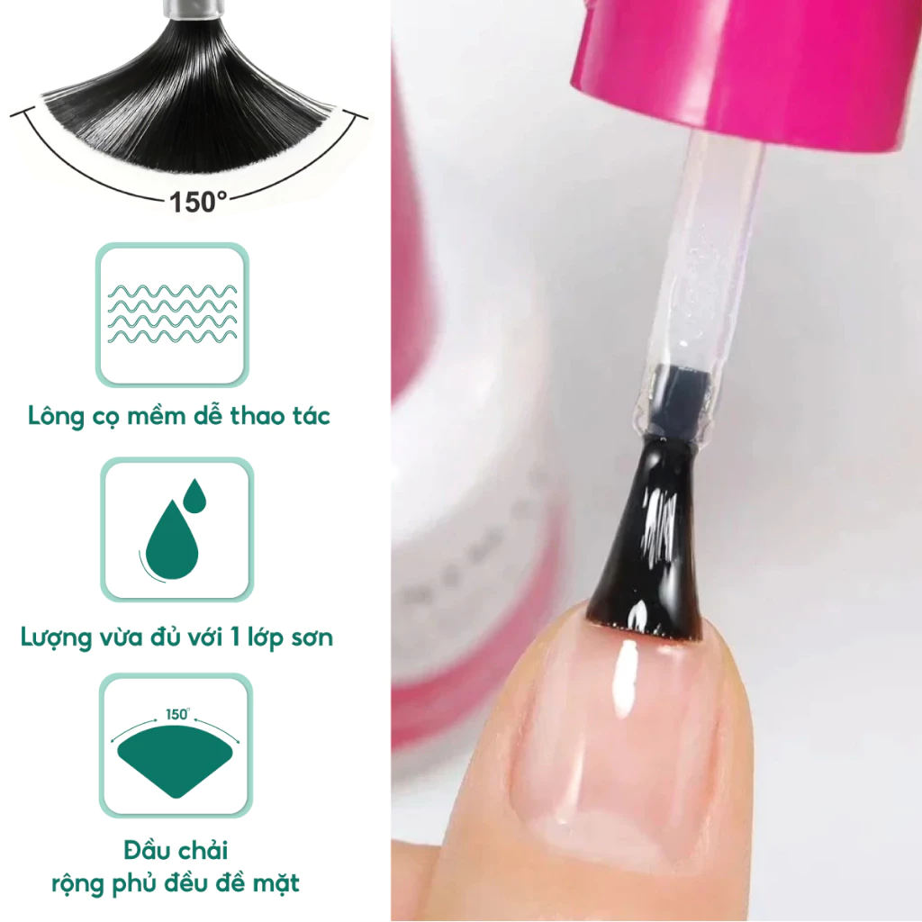 – Công dụng: Base gel; Cứng móng; Nối móng; Úp móng; Top loang; Top bóng