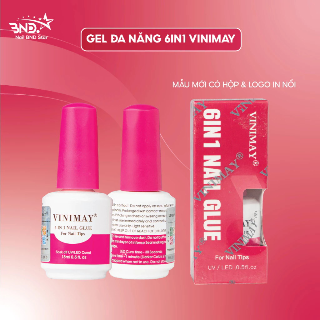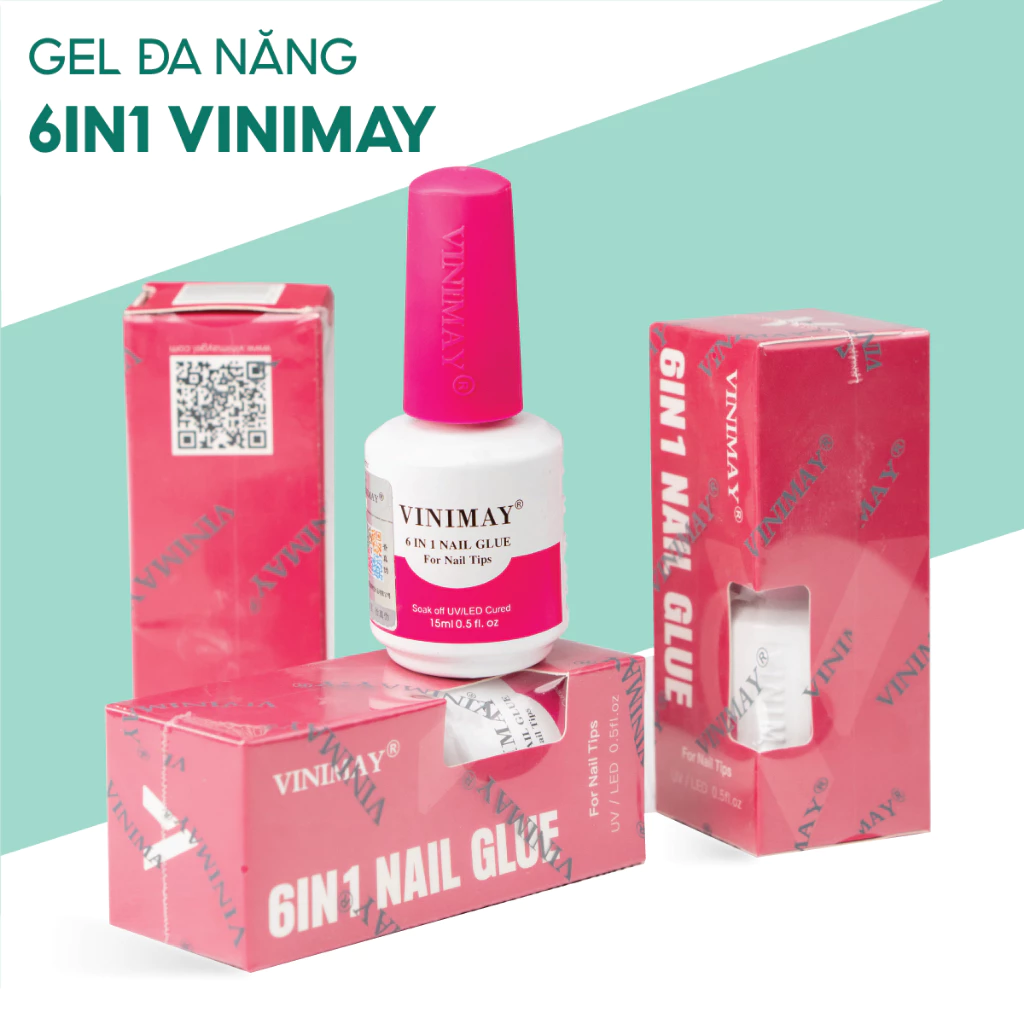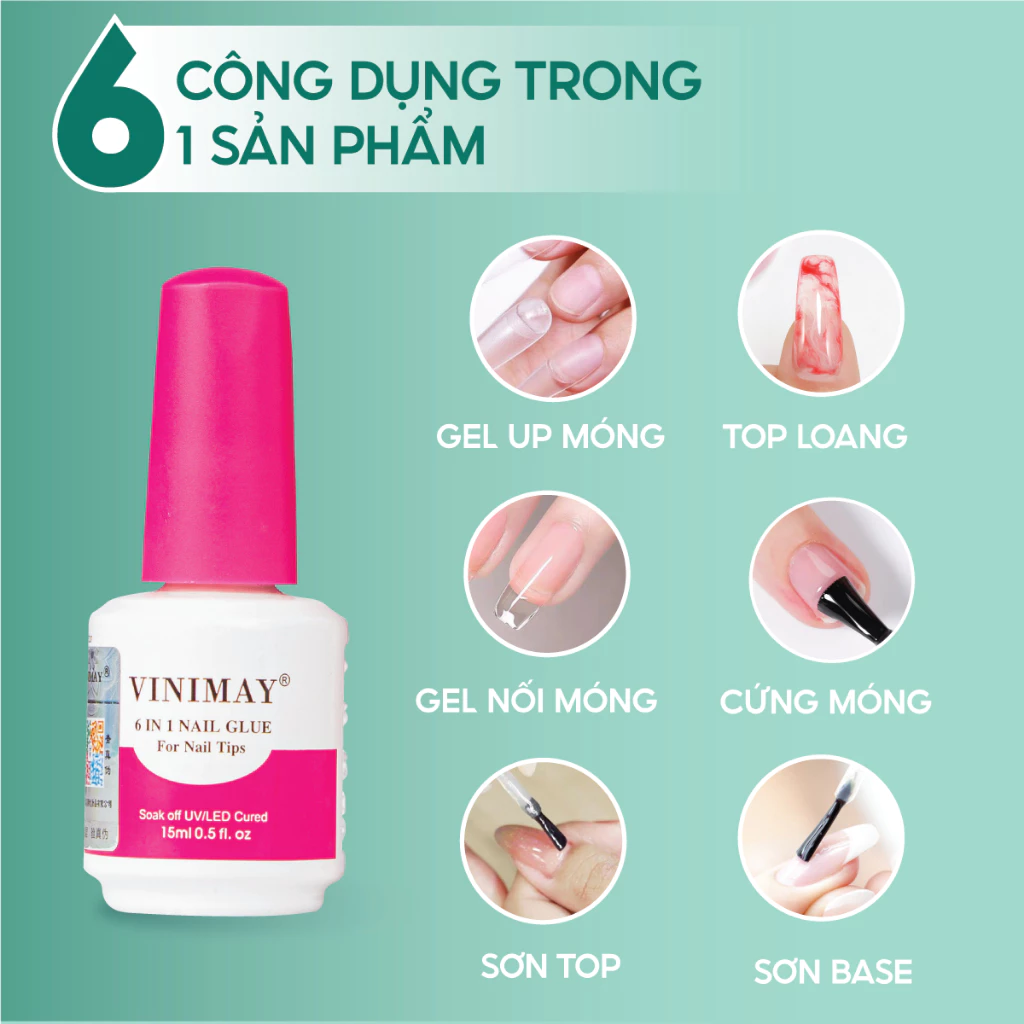 Gel đa năng 6in1 nail glue Vinimay chính hãng 15ml – Sơn gel base, cứng móng, nối úp móng, top loang, top bóng