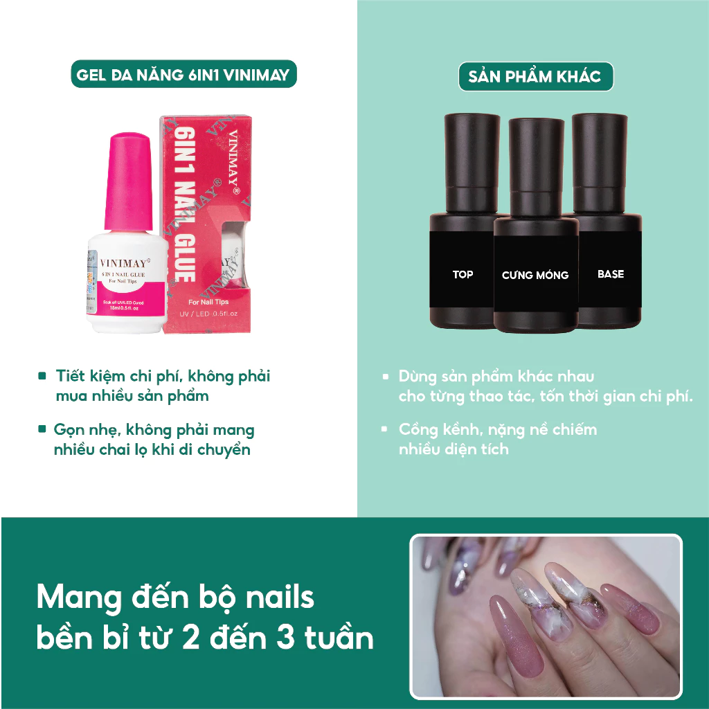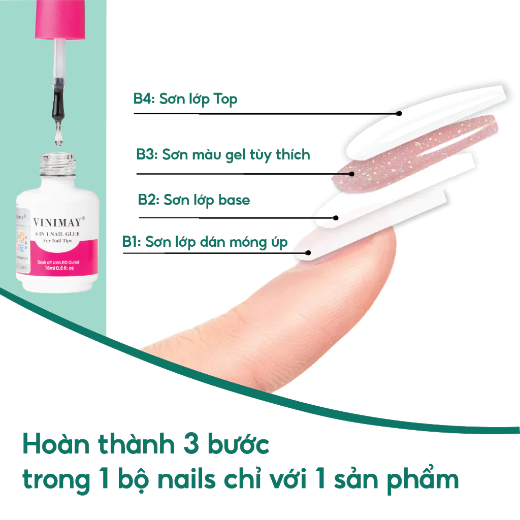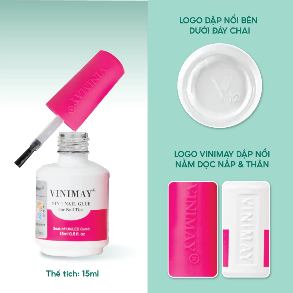 Gel đa năng 6in1 nail glue Vinimay chính hãng 15ml – Sơn gel base, cứng móng, nối úp móng, top loang, top bóng