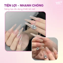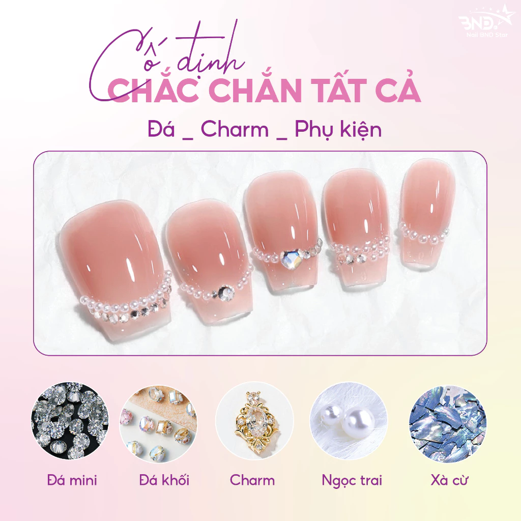 Keo gắn charm đính đá nail bền chắc sở hữu chất gel đặc sánh dễ dàng thao tác liên kết tất cả các loại đá viên kích cỡ to nhỏ khác nhau, đá hình khối, charm, phụ kiện trang trí,…siêu chắc, siêu bền đẹp.