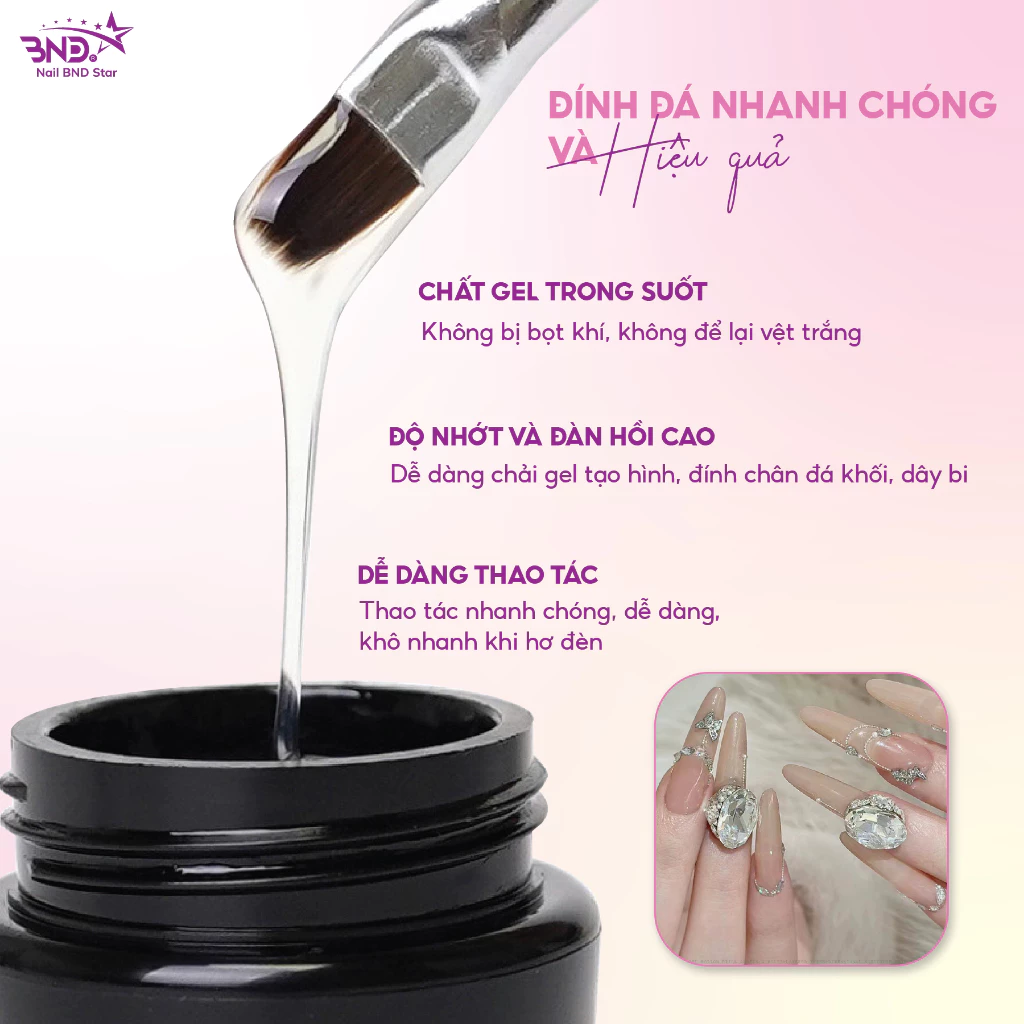 Gel đính đá có độ đàn hồi cao, dễ dàng chải gel tạo hình đính chân đá khối, dây bi