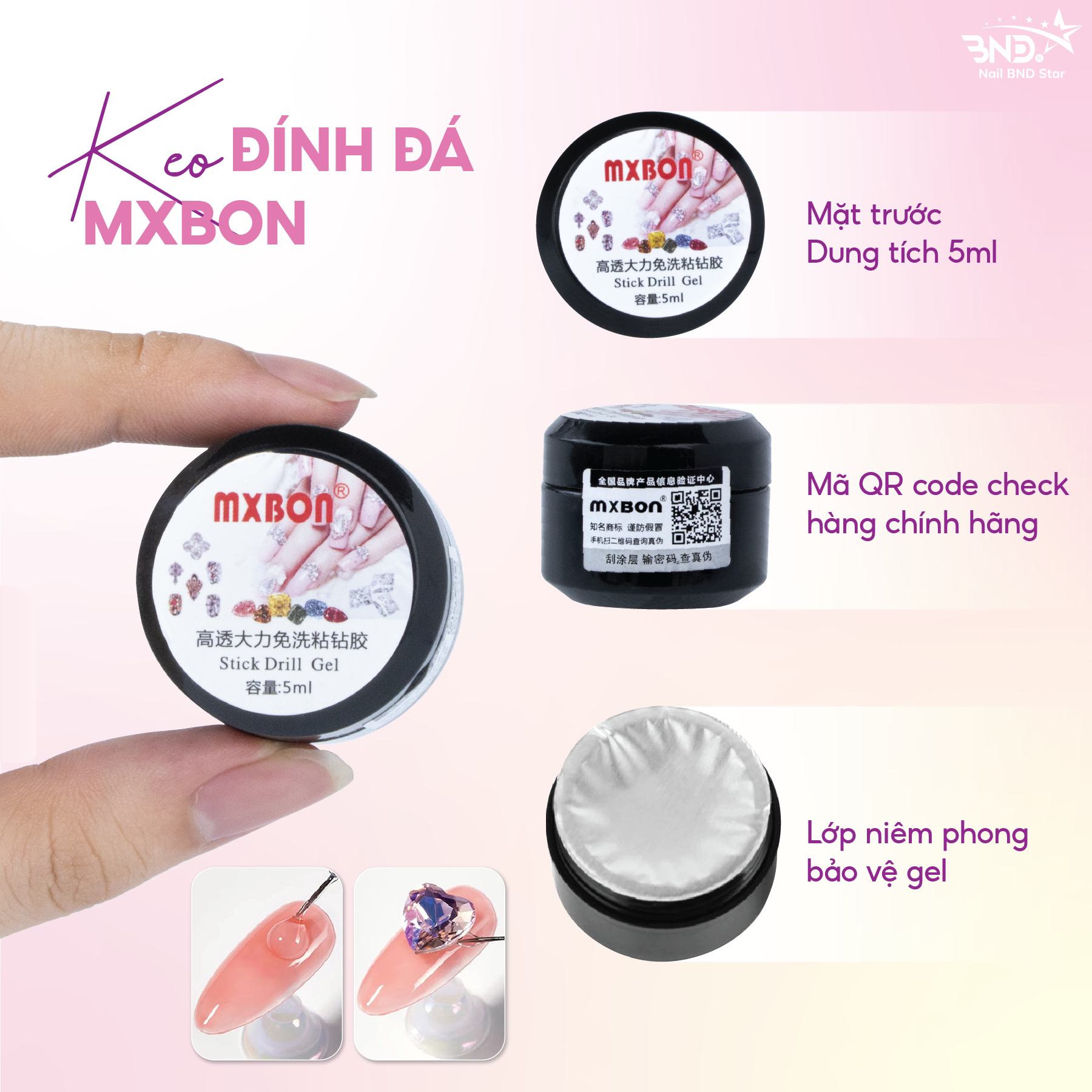 Gel đính đá Mxbon 5ml chính hãng – Gel gắn đá charm đính đá nail bền chắc chuyên dụng làm móng