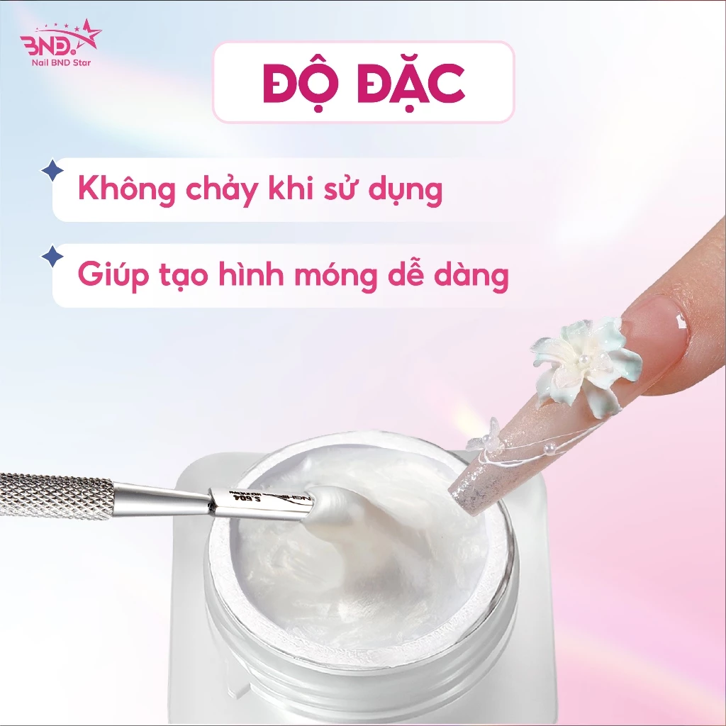 Vẽ nổi: Có thể sử dụng để tạo hiệu ứng 3D, đính đá hoặc kết hợp với các loại gel màu khác để tạo nên những thiết kế độc đáo.