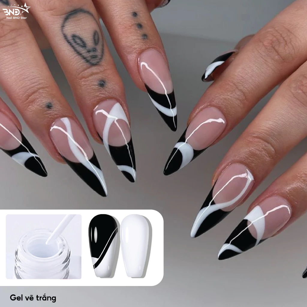 Gel vẽ nét trang trí móng Vendeeni gồm 4 màu vẽ thông dụng: trắng, đen, nhũ vàng, nhũ bạc.