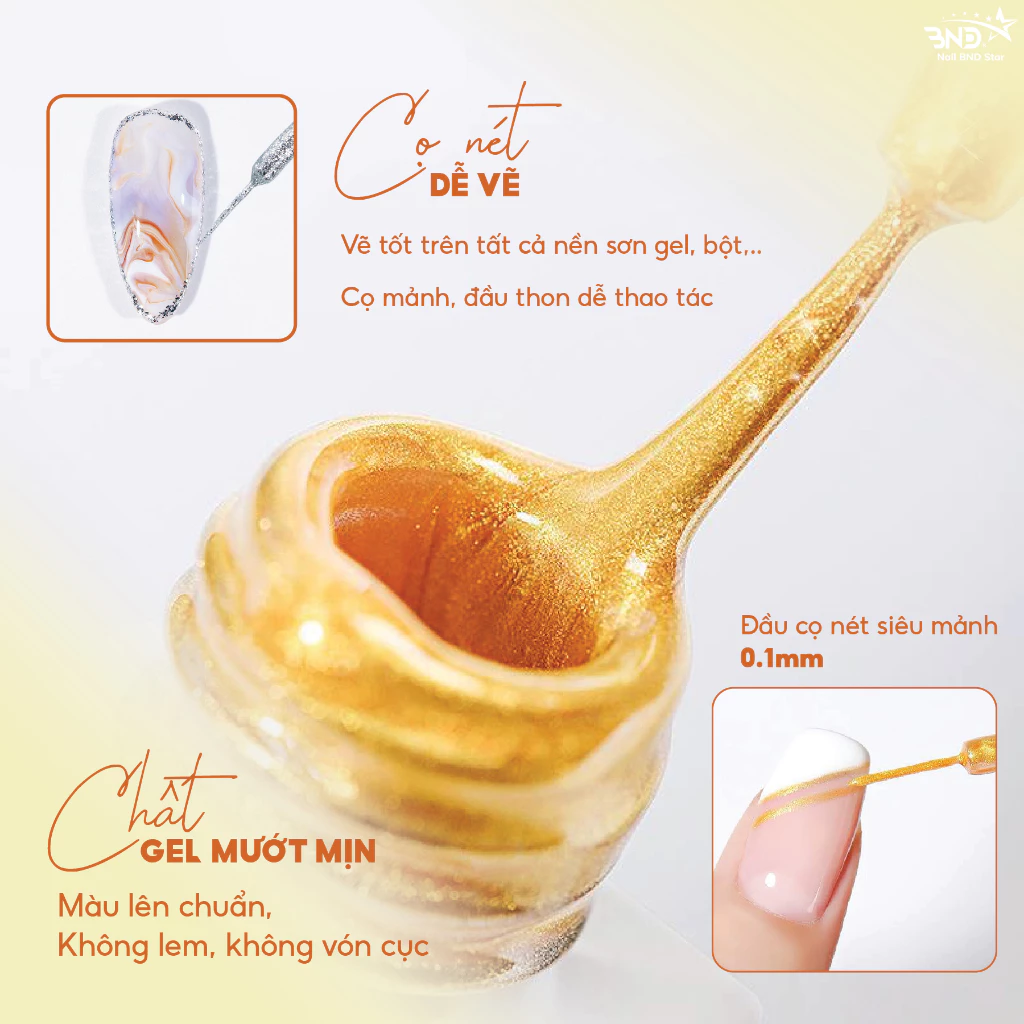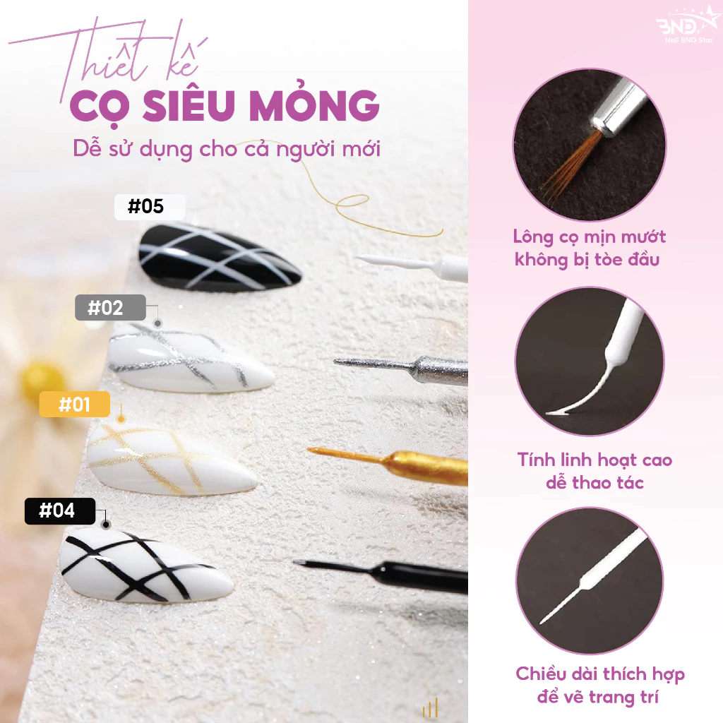 Sơn gel vẽ nét mảnh trang trí móng sở hữu đầu cọ nét siêu mảnh 0.1mm giúp dễ dàng kiểm soát lượng gel và thực hiện những nét vẽ gel thanh mảnh, yêu cầu sự chính xác cao như: vẽ french, vẽ các đường thẳng liền mạch, vẽ đường cong, vẽ nhện, vẽ họa tiết phức tạp,..