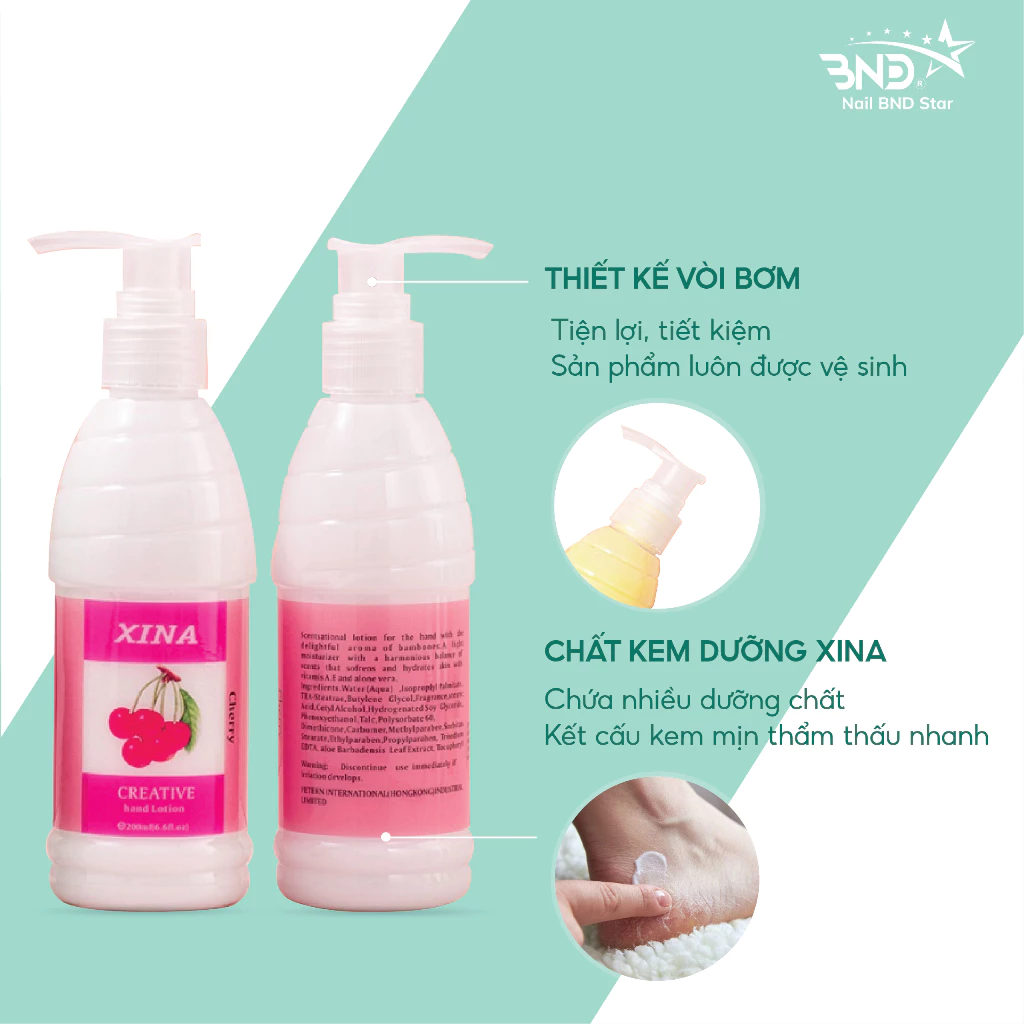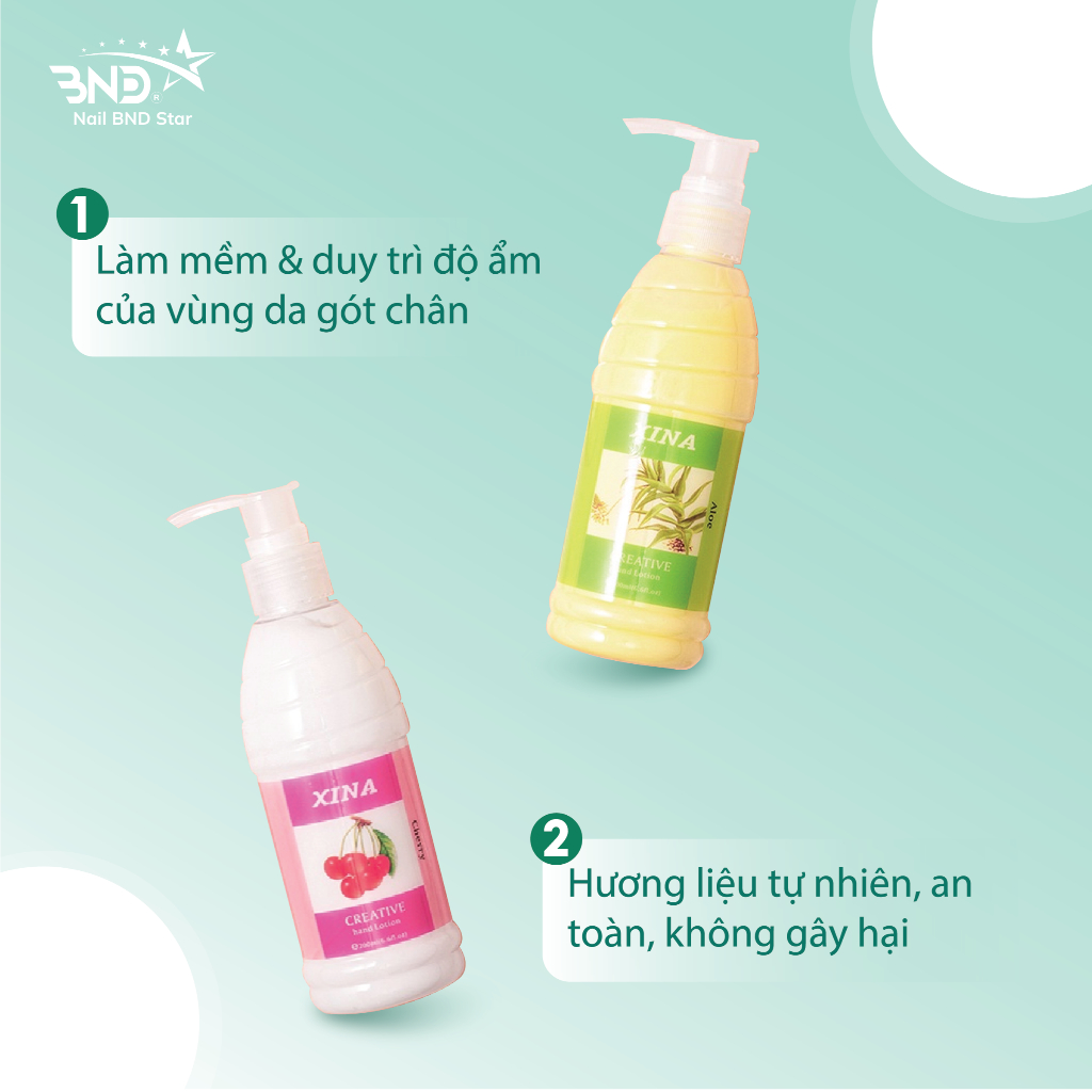 Kem mềm da Xina chứa những dưỡng chất cần thiết nuôi dưỡng và bảo vệ vùng da quanh nail, cùng với đó là thiết kế dạng vòi pump tiện lợi tiết kiệm thời gian trong quá trình chăm sóc móng.