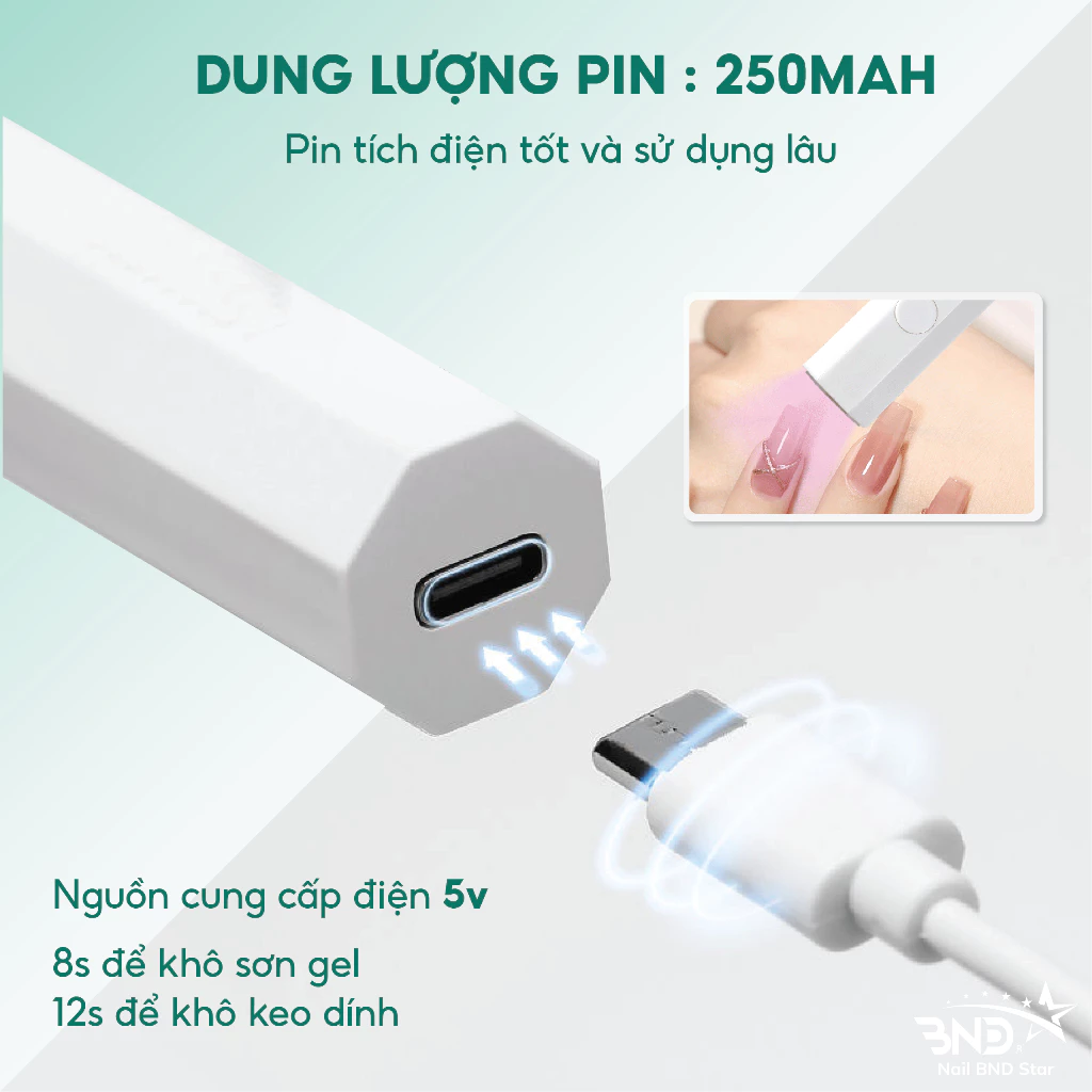 Máy hơ gel mini tích điện 3W – Đèn hơ móng nail mini cầm tay 1 ngón tiện lợi bảo hành 1 tháng Nailbnd