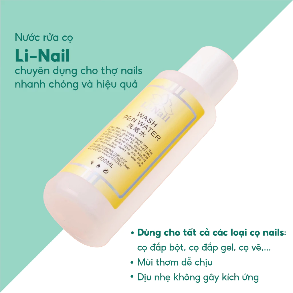 Nước rửa cọ Li-nail (200ml) – Dung dịch rửa cọ nail sạch sẽ, tăng độ bền cho cọ chuyên dụng làm nail