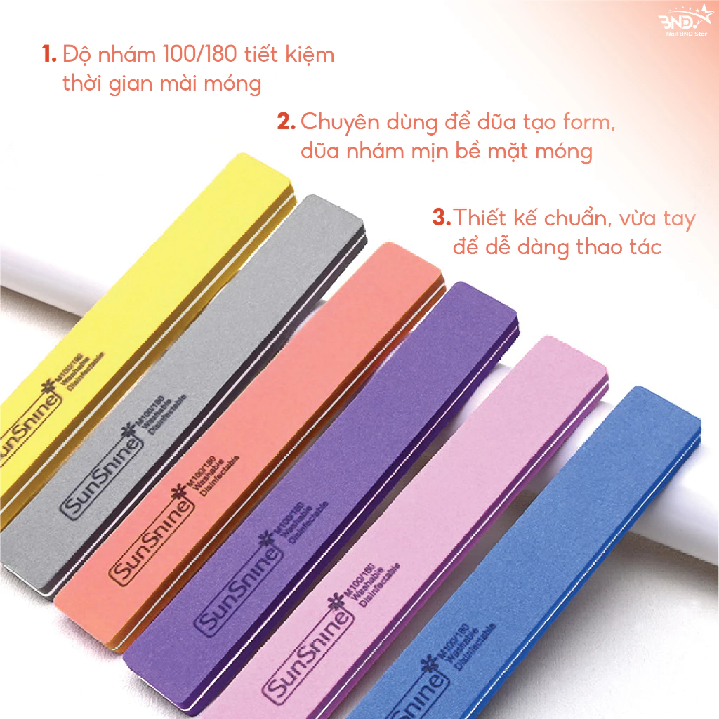Phao dũa mịn Sunshine chà móng nhiều màu sắc hình chữ nhật dễ cầm chuyên dụng cho dân làm móng (giao màu ngẫu nhiên)