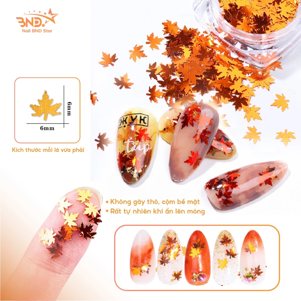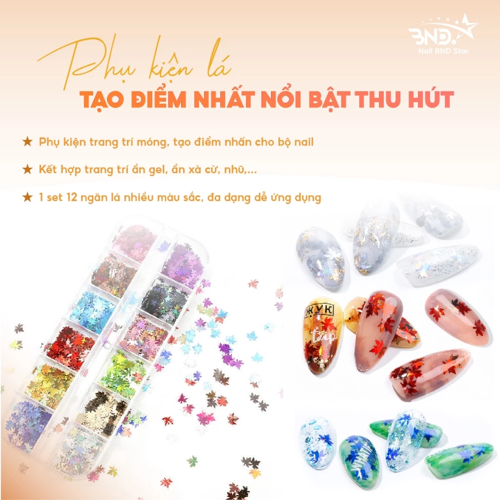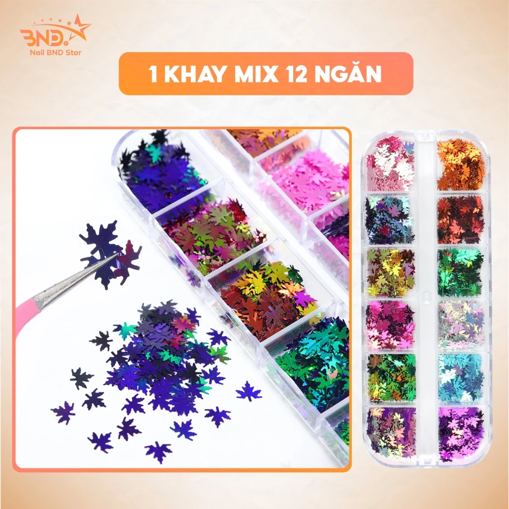 Phụ kiện lá phong làm nail – Set lá phong 12 ngăn đắp gel, ẩn móng, trang trí móng xu hướng Thu Đông