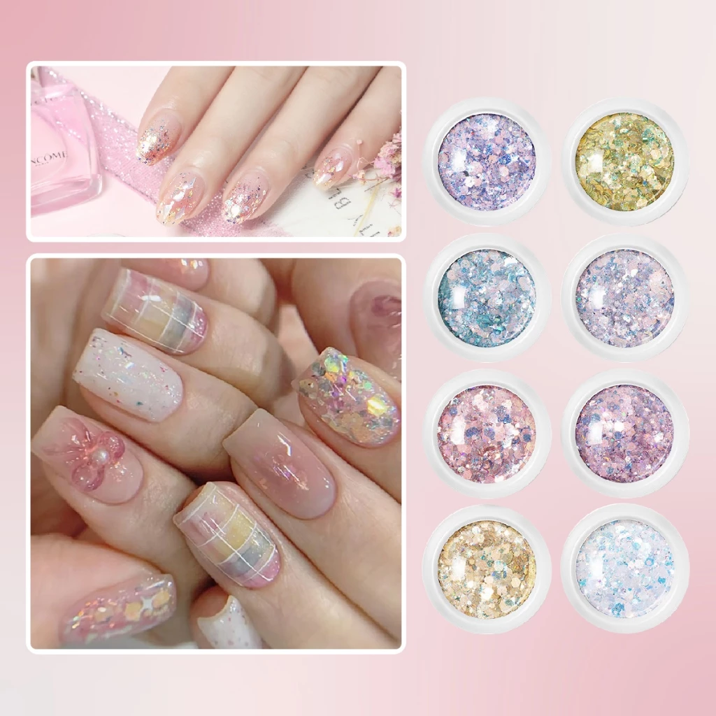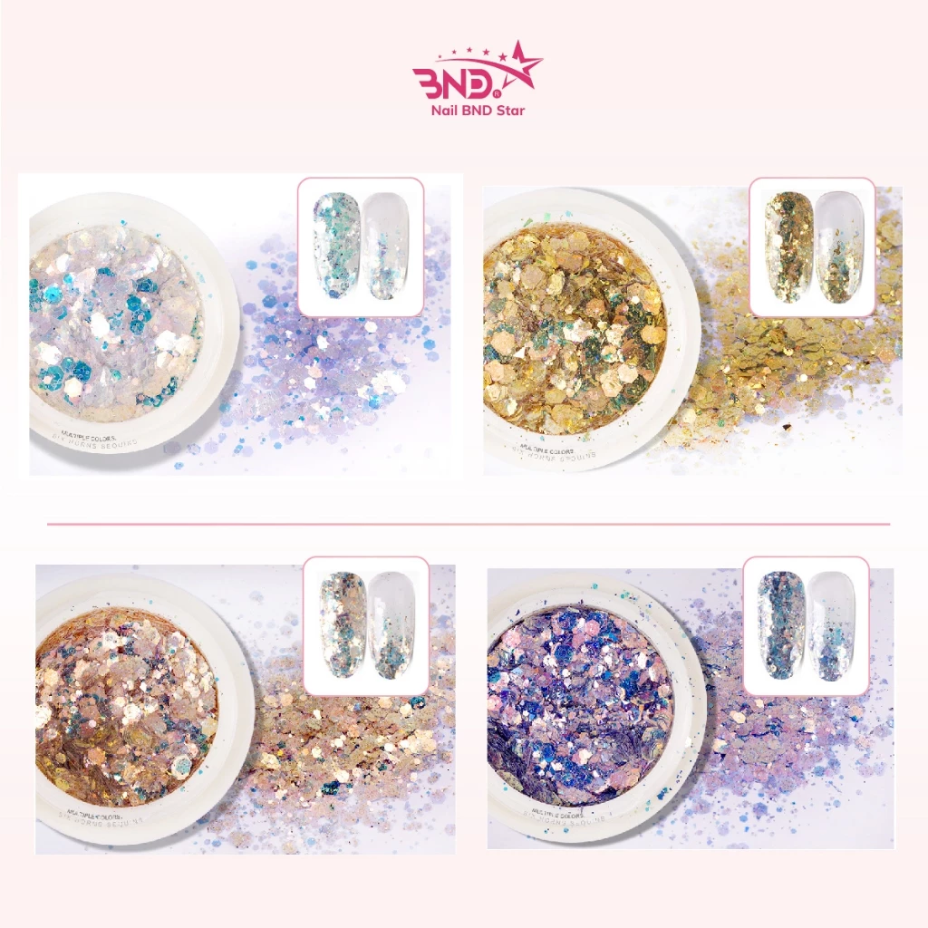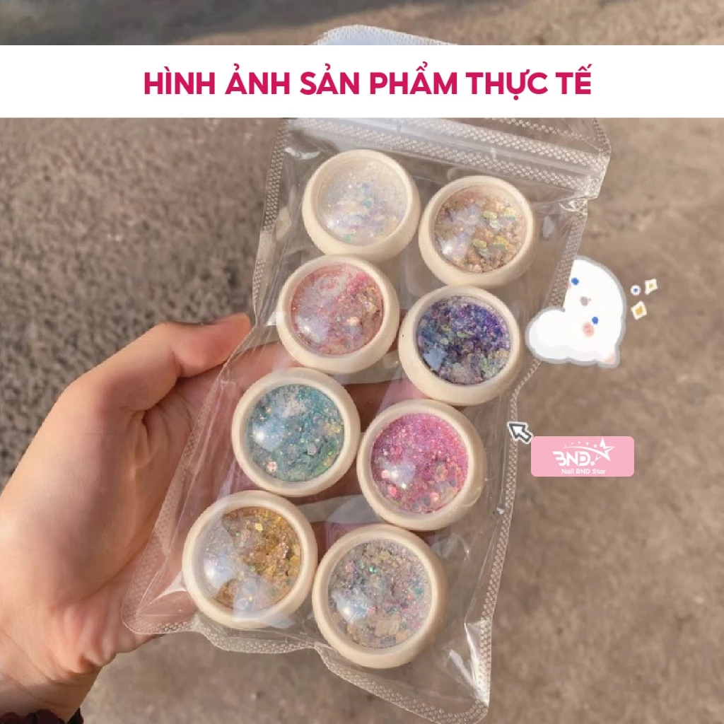 Set nhũ vảy cá, nhũ kim tuyến nail trang trí móng mix 8 màu, ẩn gel làm nail siêu xinh NailBND