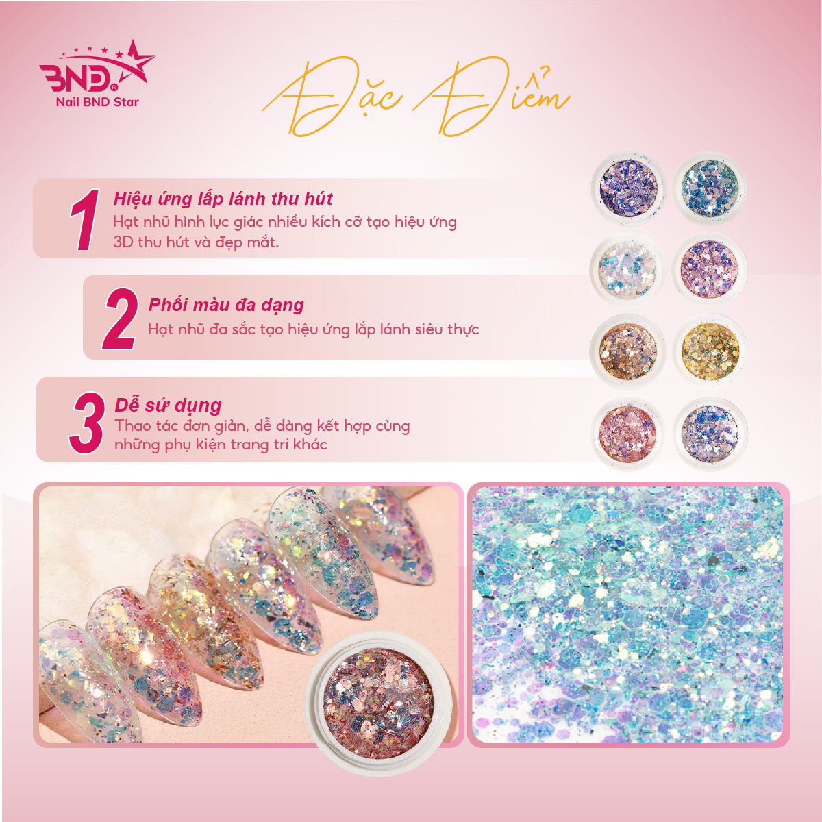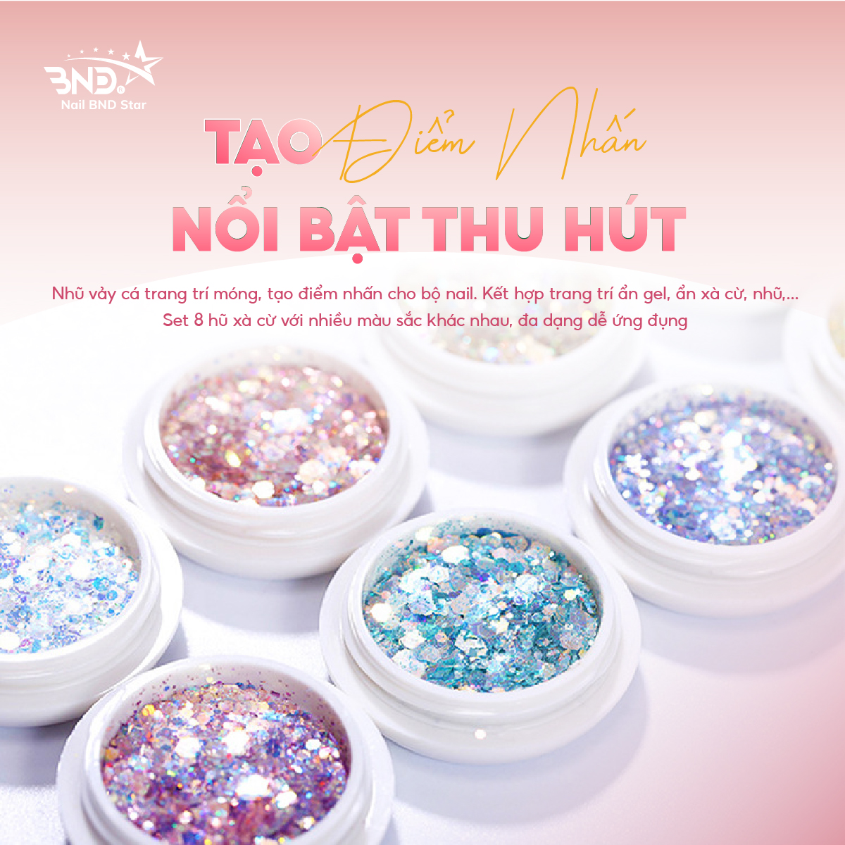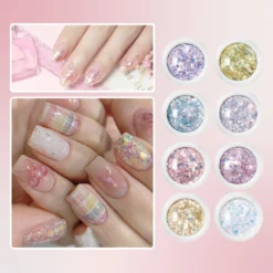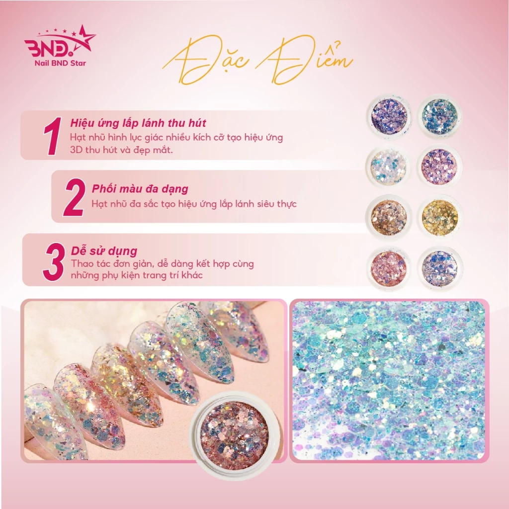 Set nhũ vảy cá, nhũ kim tuyến nail trang trí móng mix 8 màu, ẩn gel làm nail siêu xinh NailBND