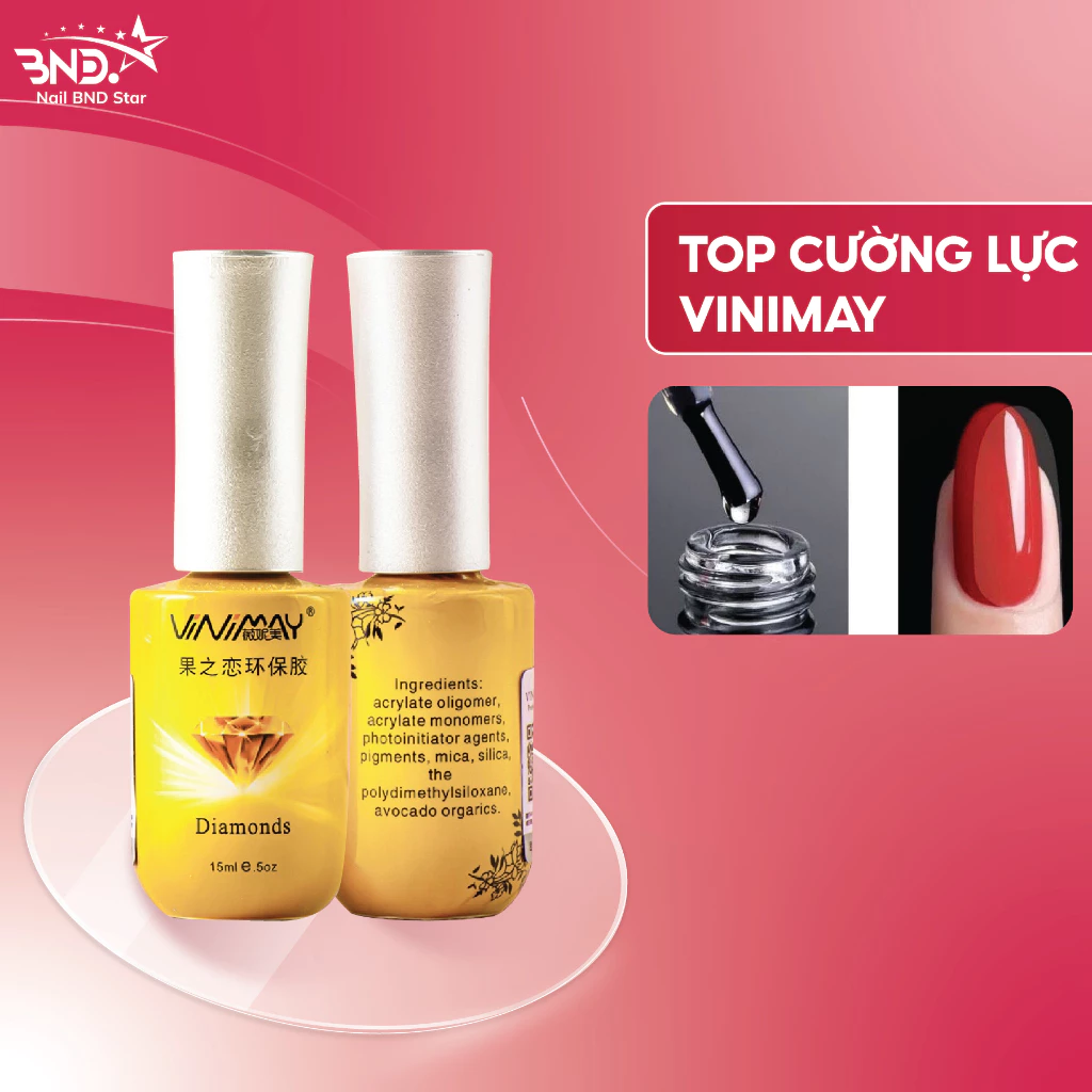 Top cường lực Vinimay tạo độ cứng, độ bền gấp 2 lần so với những loại top thường mà vẫn taọ được độ bóng đẹp cho móng.