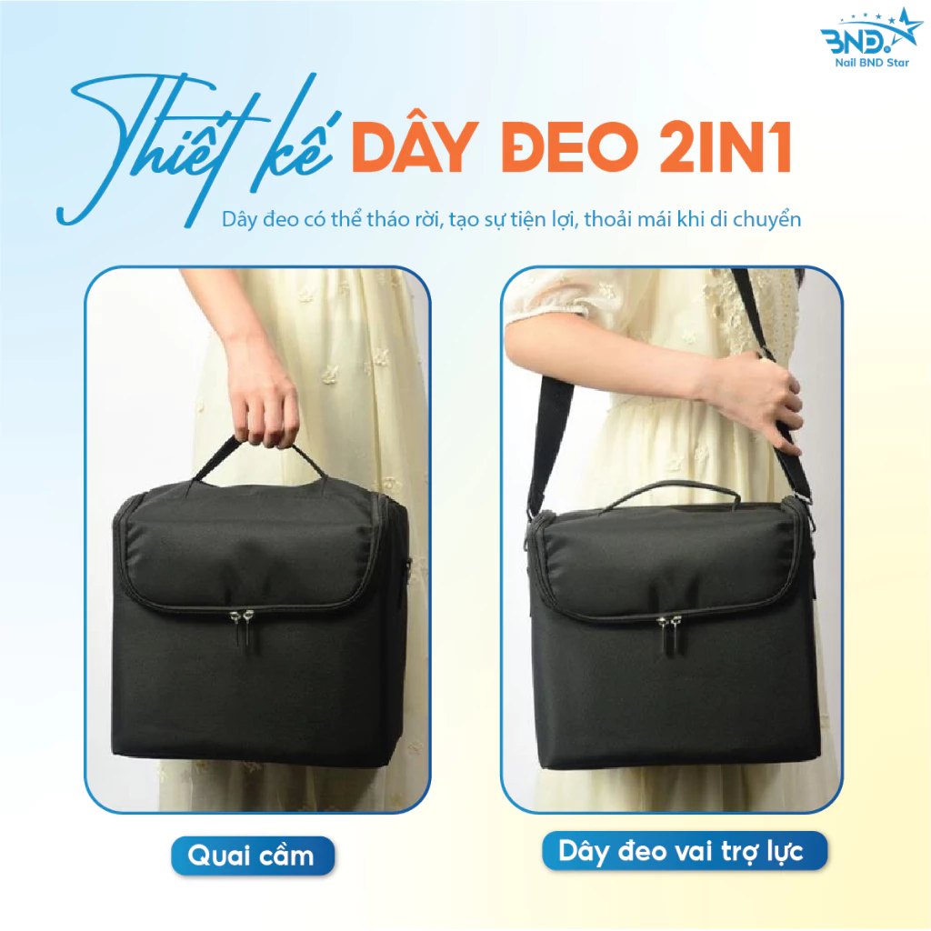 Cốp vải 2 tầng đựng đồ nail – Cốp vải đa năng đựng dụng cụ, đồ nghề nail, mi, trang điểm kèm dây đeo tiện lợi
