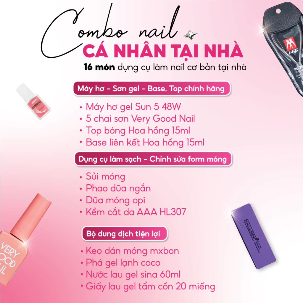 Combo nail cá nhân tại nhà – Bộ dụng cụ làm nail cá nhân cơ bản (16 món) NAILBND