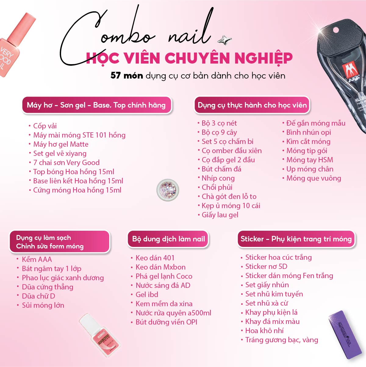 Combo nail đầy đủ chuyên nghiệp – Bộ dụng cụ làm nail cho thợ, salon 51 món NAILBND
