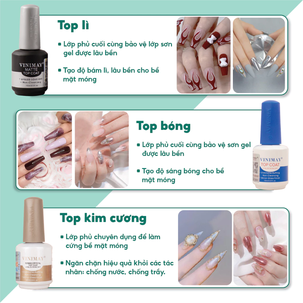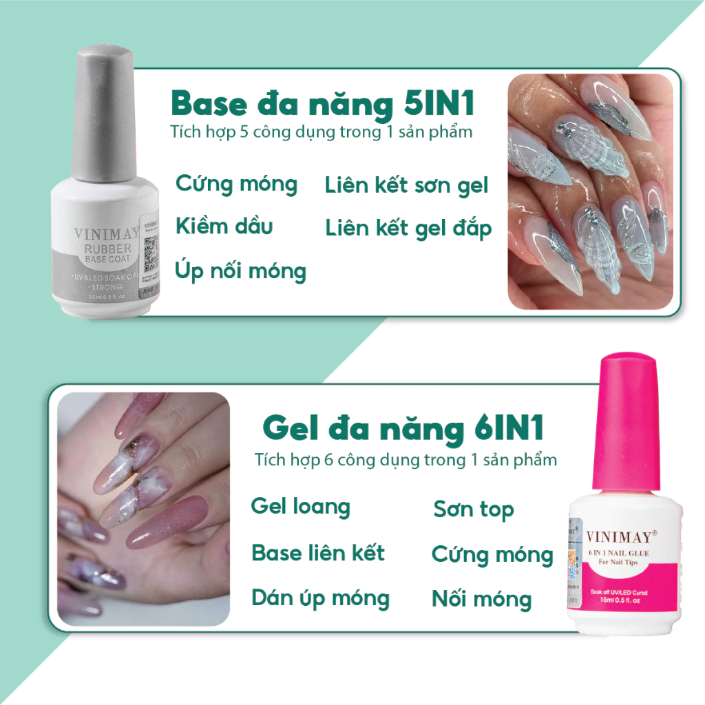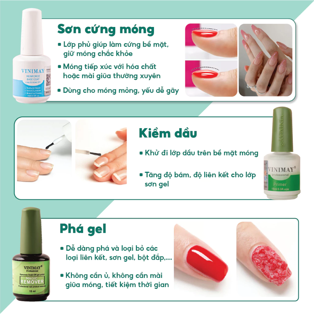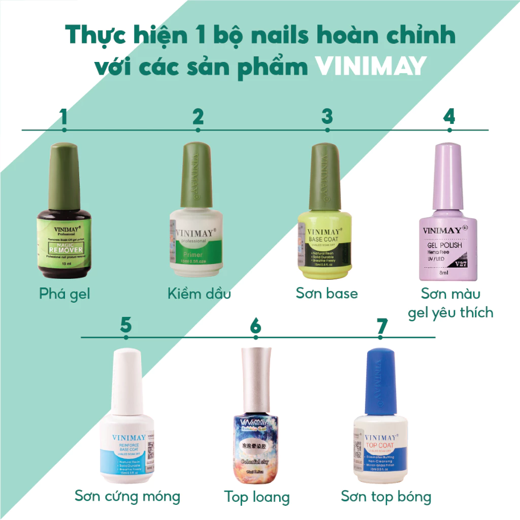 Base, top, cứng móng, phá gel, kiềm dầu Vinimay chính hãng đa dụng tiện lợi dành cho dân làm nail