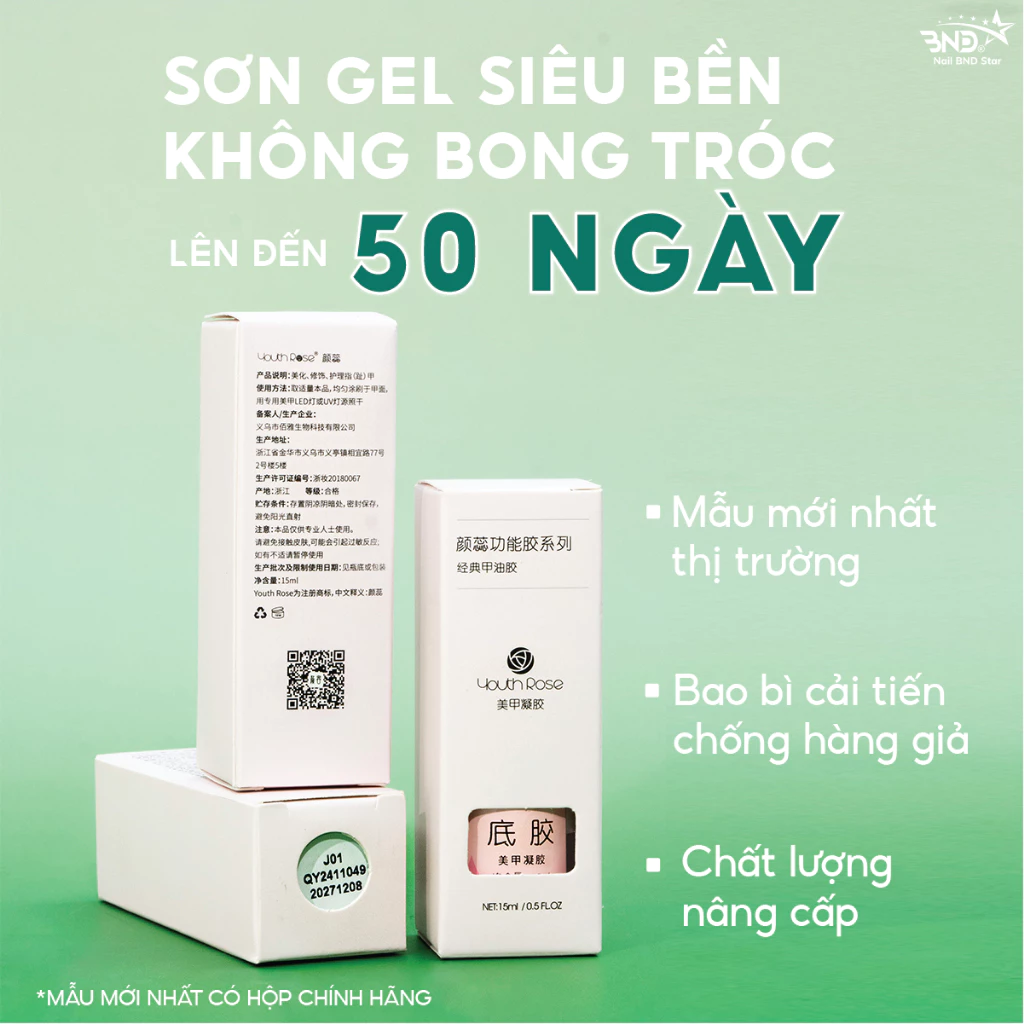 Base top hoa hồng Youth Rose 15ml – Gel liên kết, phủ bóng, cứng móng, top lì chuyên dụng làm nail