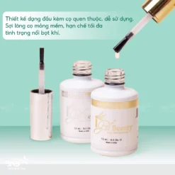 Thiết kế dạng đầu kèm cọ quen thuộc, dễ sử dụng. Sợi lông cọ mỏng mềm, hạn chế tối đa tình trạng nổi bọt khí.