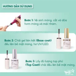 + Bước 3: Chải gel liên kết (Base coat) đều lên bề mặt móng tiếp đó đưa tay vào máy hơ UV/LED với thời gian thích hợp khoảng từ 30_60s (tùy vào loại máy hơ các bạn sử dụng)