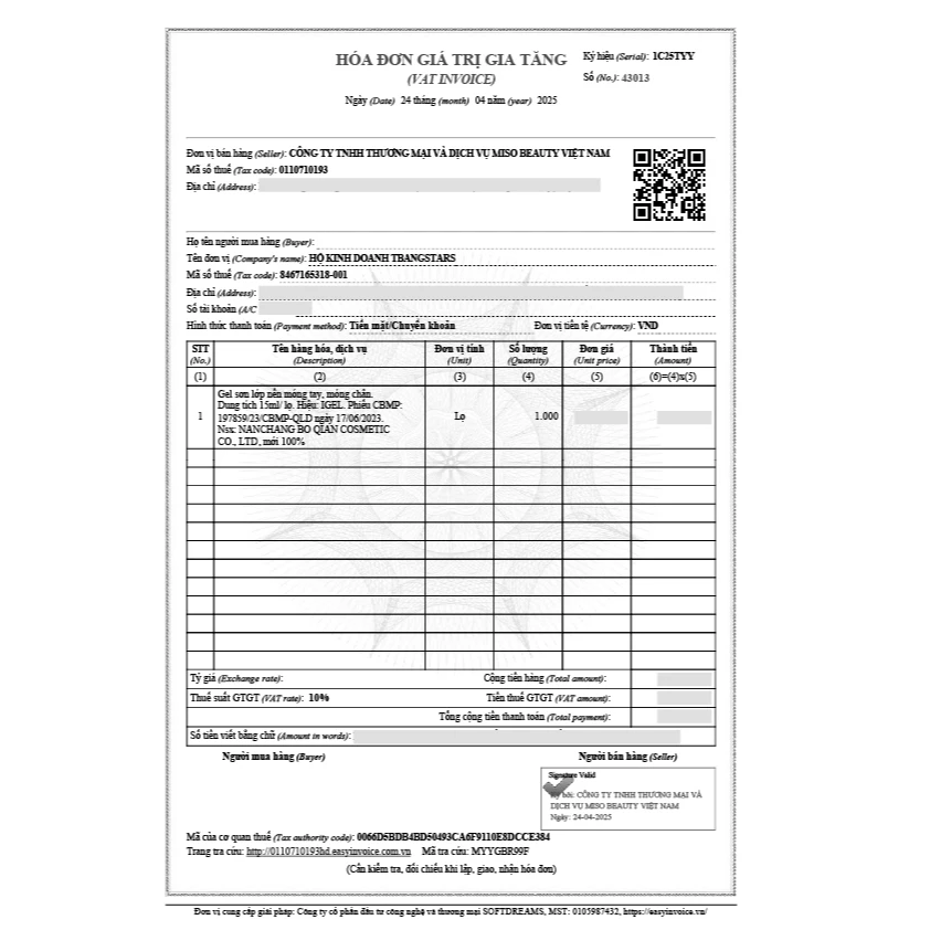 + Ngày sản xuất/Hạn sử dụng: 24 tháng kể từ ngày sản xuất