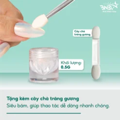Bột tráng gương nail ánh trai có khối lượng 0.5g, được đóng gói cẩn thận trong hũ nhỏ, dễ dàng bảo quản và sử dụng. Tặng kèm cọ chà tráng gương theo mỗi hũ.