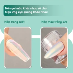 Bột tráng gương trong suốt ánh trai có thể kết hợp với nhiều nền gel khác nhau tạo ra những bộ nail nghệ thuật độc đáo.
