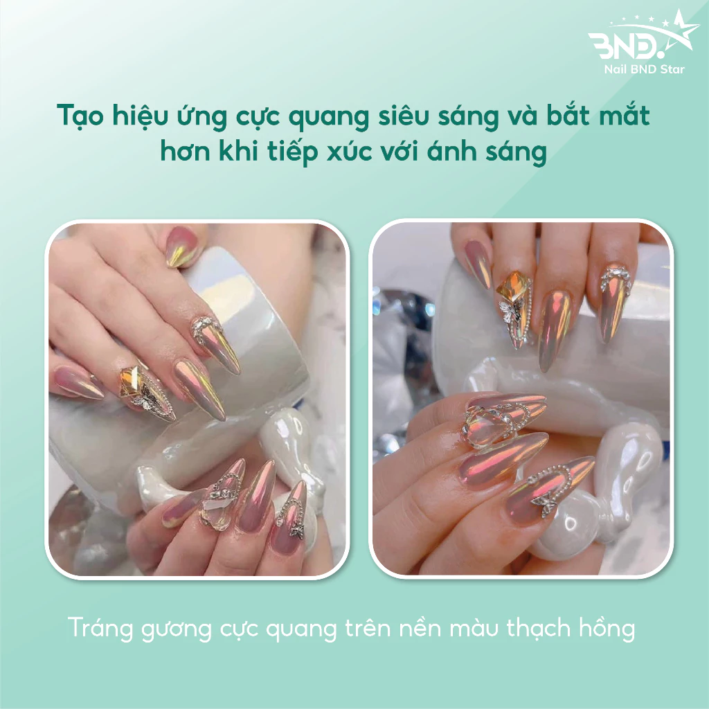 Bột tráng gương ánh cực quang là sản phẩm trang trí móng tay được rất nhiều chị em yêu thích và sử dụng phổ biến trong ngành nail.
