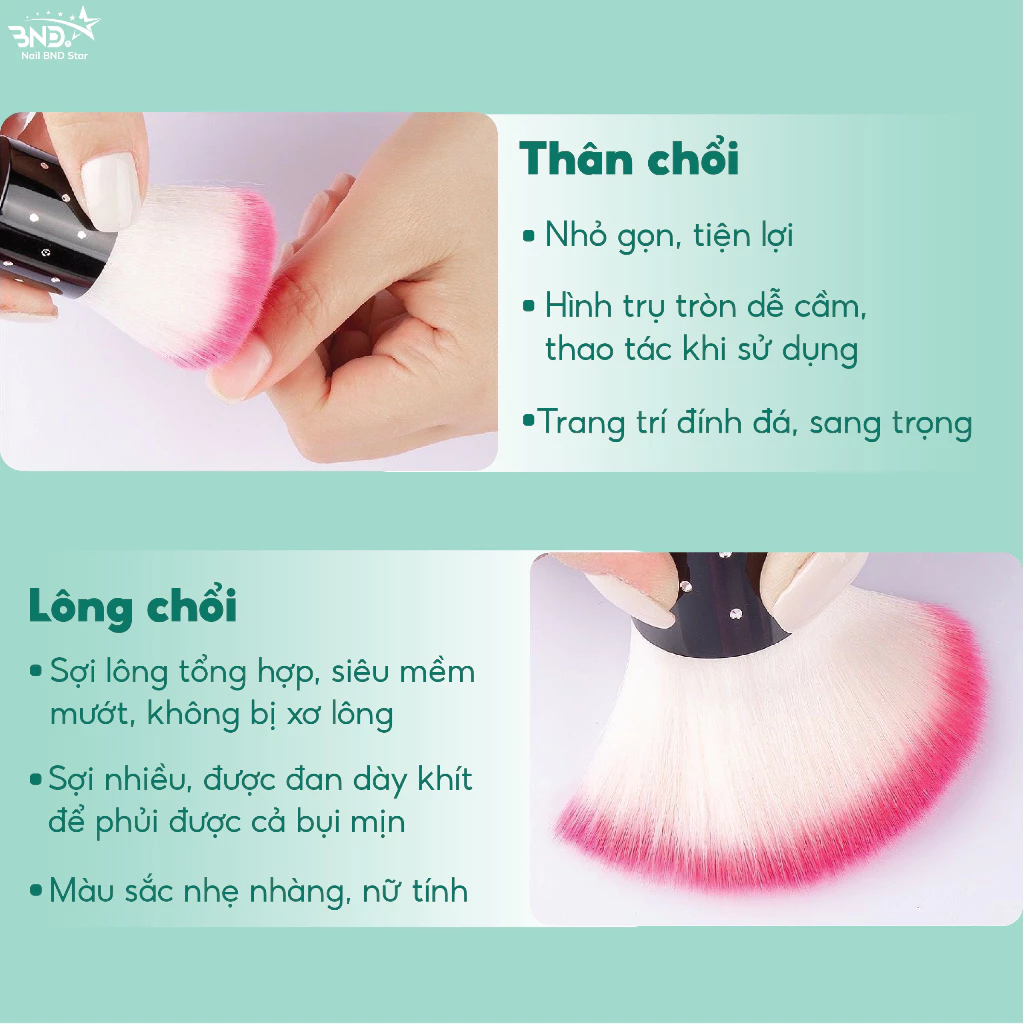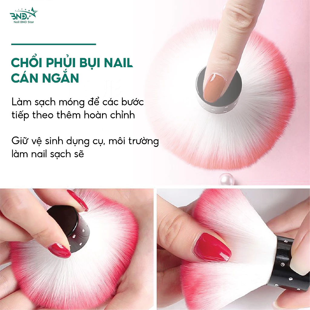 Chổi phủi bụi nail cán ngắn – Cọ phủi bụi lông dày, mềm mượt chuyên dụng cho dân làm nail