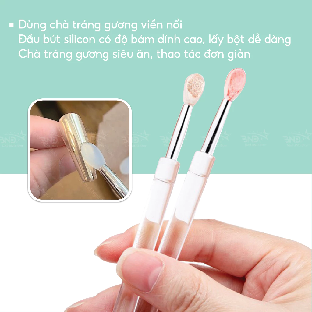 Bước 4: Chà bột tráng gương bằng cọ silicone, phủi sạch bụi thừa