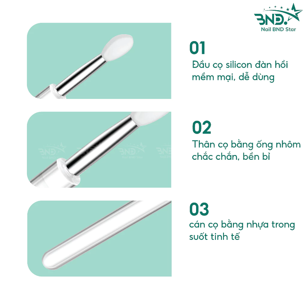 Cọ silicone là một sản phẩm đa chuyên chuyên sử dụng trong ngành làm đẹp, đặc biệt là ngành nail. Cọ silicone không chỉ sử dụng để chà tráng gương mà còn sử dụng để tán màu son, lấy kem dưỡng, lấy nhũ mắt…