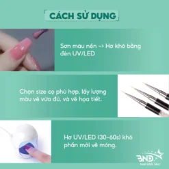 + Bước 3: Cuối cùng đưa tay vào máy hơ UV/LED với thời gian thích hợp khoảng từ 30-60s (tùy vào loại máy hơ các bạn sử dụng) để hơ khô phần mới vẽ. Rồi bạn tiếp tục thực hiện mẫu móng muốn trang trí.
