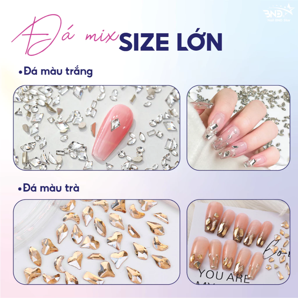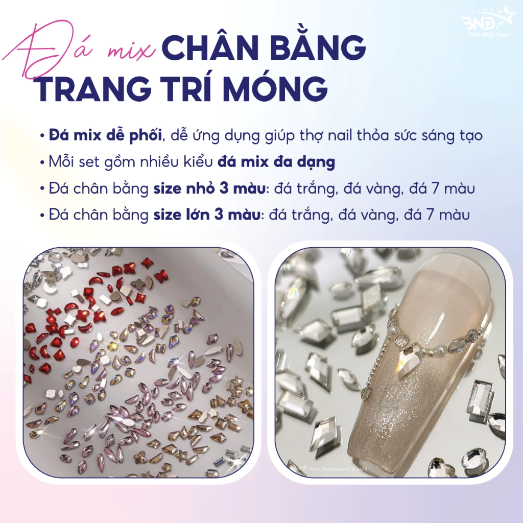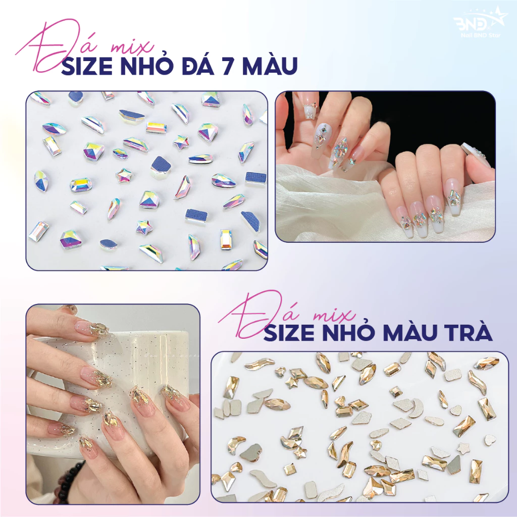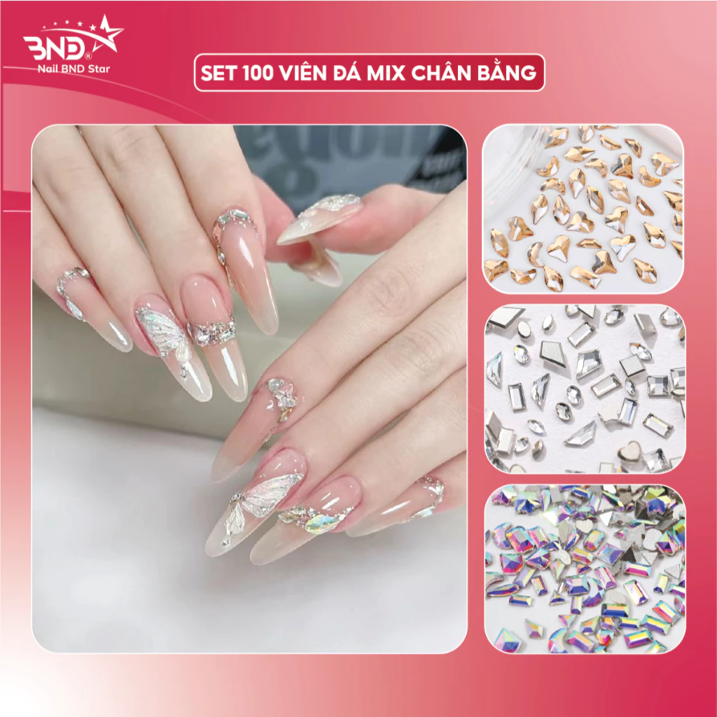 Đá khối chân bằng mix size trang trí móng – Set 100 viên đá chân bằng mix đa dạng kiểu dáng làm nail siêu sáng