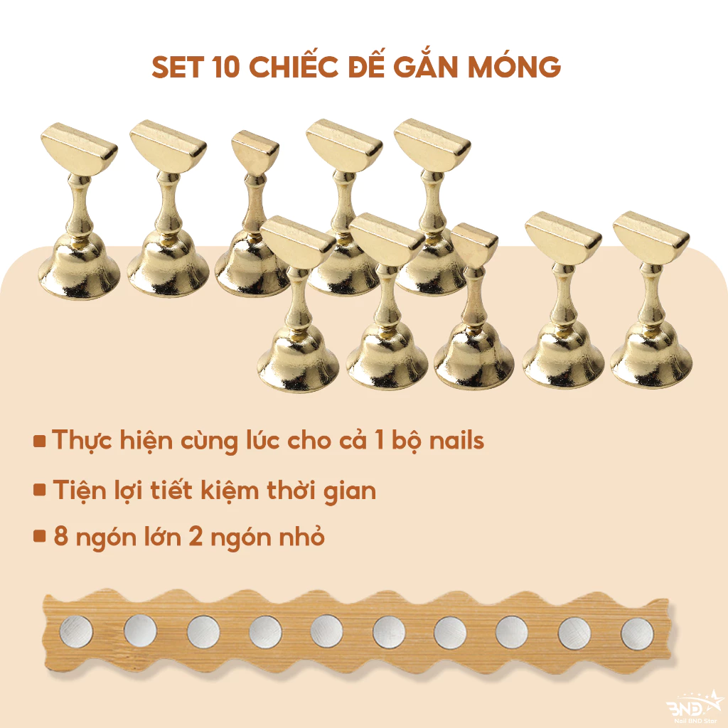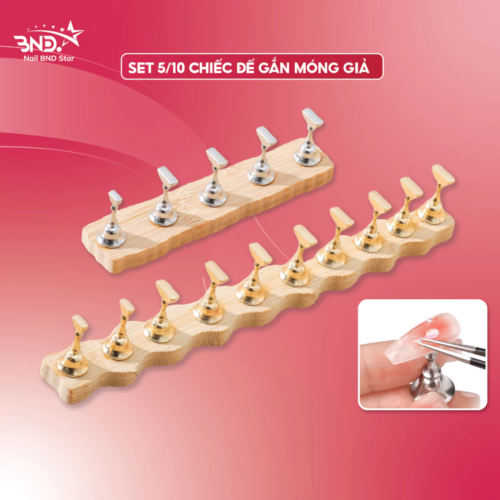 – Quy cách đóng gói: Set 5: 5 chiếc đế gắn móng, 1 thanh gỗ; Set 10: 10 chiếc đế gắn móng, 1 thanh gỗ.