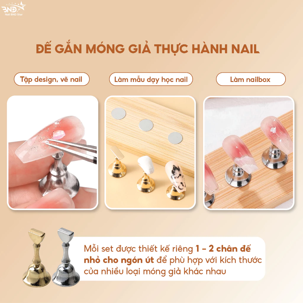 Đế gắn móng giả tập vẽ nail là sản phẩm quen thuộc của mọi thợ nail từ quá trình bắt đầu học đến khi thành thạo, đế gắn móng giả hỗ trợ tập vẽ nail, design và trang trí móng. Đế nam châm gắn móng giả tập vẽ nails được sử dụng kèm keo dán, keo đất sét để cố định móng vào chân đế.