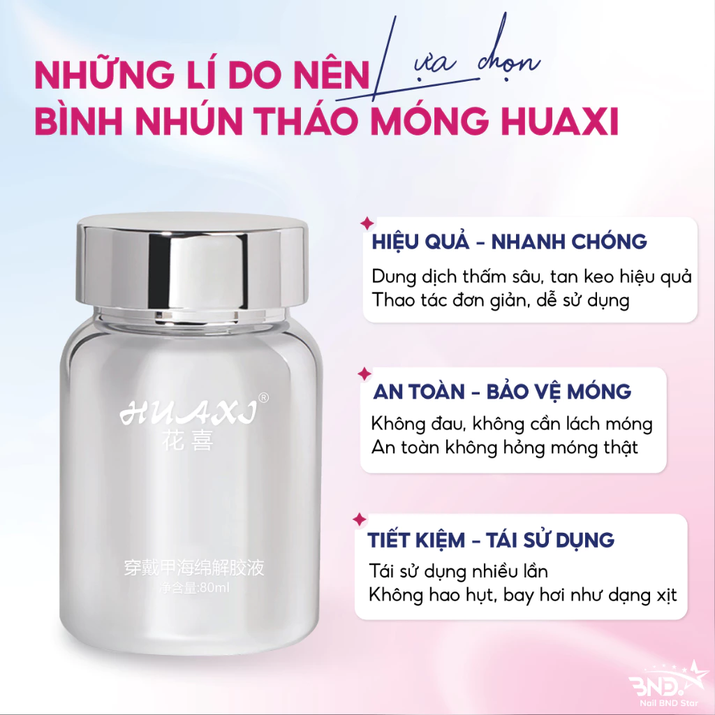 Nước tháo móng Huaxi 80ml chính hãng – Bình nhún tháo móng up tự động, không nóng, không hại móng