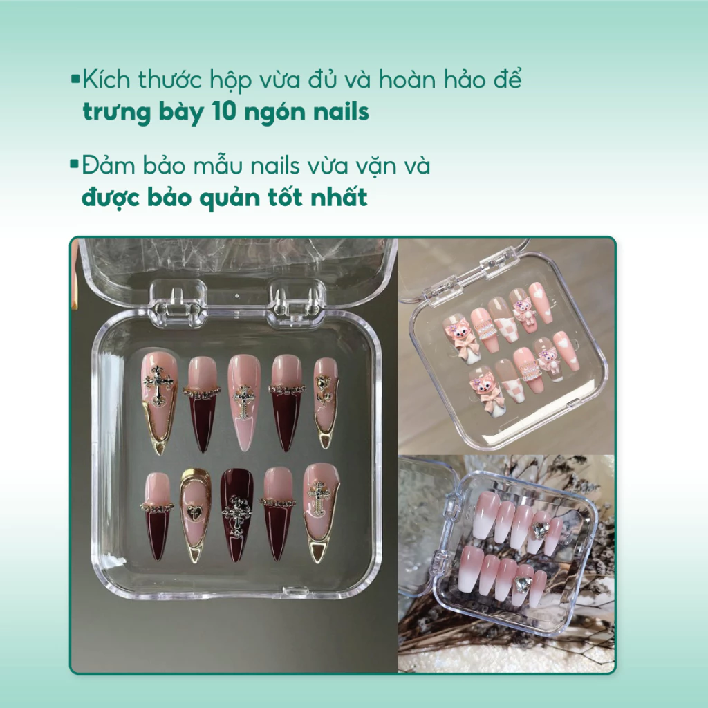 Hộp đựng nail box trong suốt hình vuông – Combo hộp đựng bảo vệ nailbox, đựng mi fan nhựa mica loại tốt
