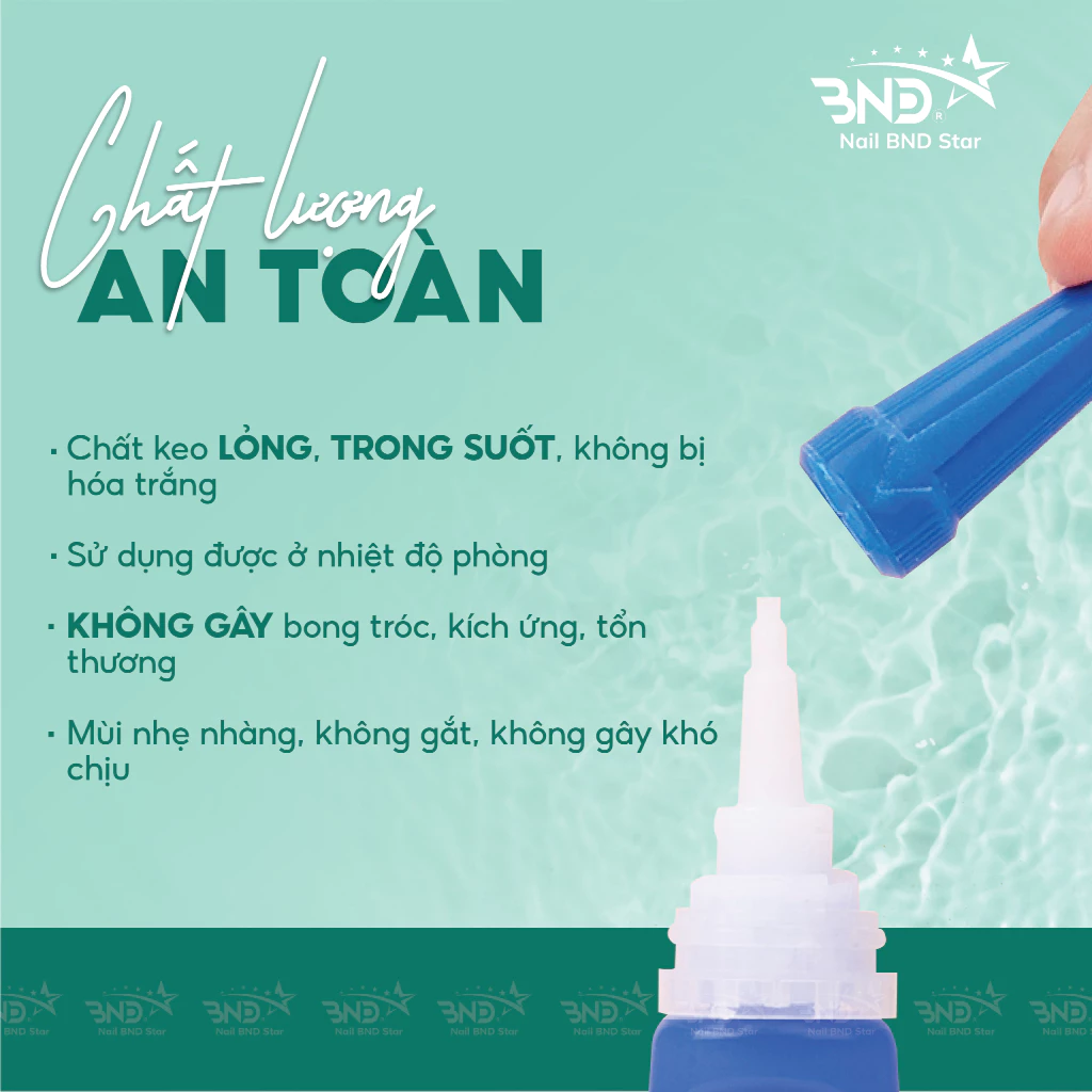 + Dung dịch: dạng keo lỏng, không màu nên không ảnh hưởng đến thẩm mỹ móng