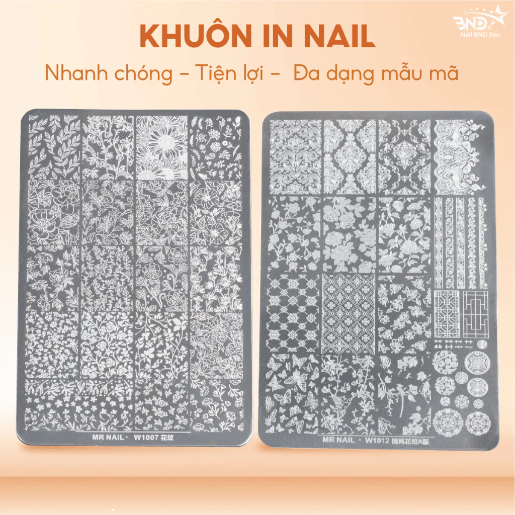 Khuôn in thép Mr Nail – Khuôn in nail gấm, in họa tiết trang trí móng, nhiều họa tiết sắc nét