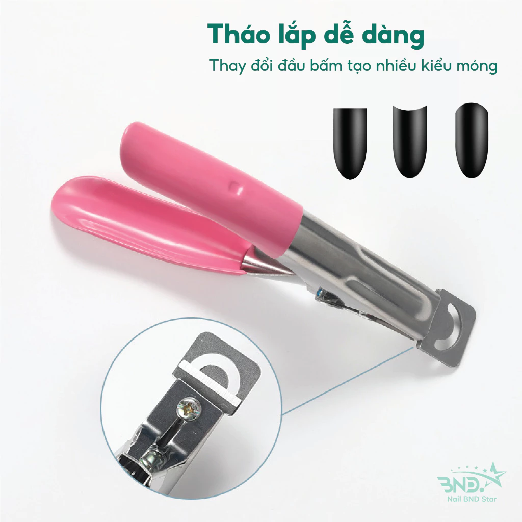 Kềm bấm móng giả có hình dáng thời trang và dễ sử dụng, lò xo đàn hồi cao nên lực bấm cực khỏe, cắt móng giả cực nhạy.