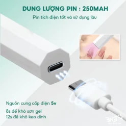 Máy hơ mini này có khả năng tích điện tiện lợi, giúp dễ dàng hơ khô gel trong những thao tác làm nail cần phải hơ ngay như úp móng, nối móng, đắp gel, hơ mắt mèo,…
