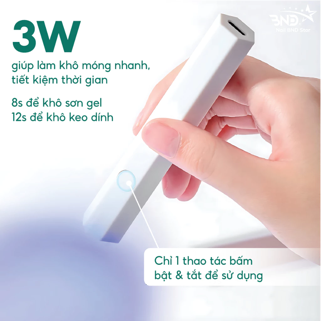 Máy hơ gel mini tích điện 3W – Đèn hơ móng nail mini cầm tay 1 ngón tiện lợi bảo hành 1 tháng Nailbnd