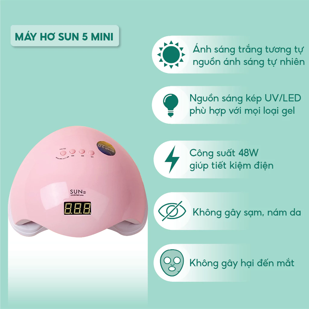 – Tên sản phẩm: Máy hơ gel SUN 5 mini tem xanh