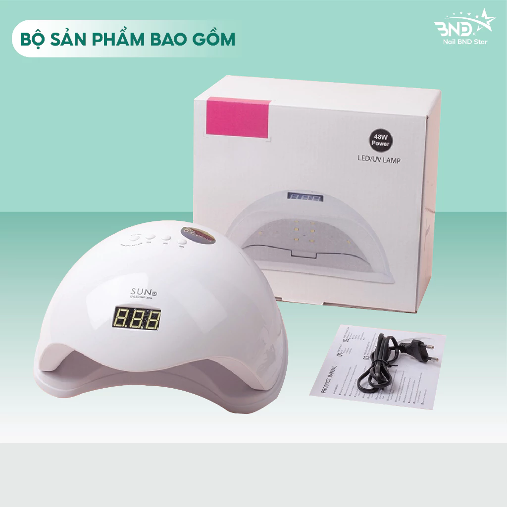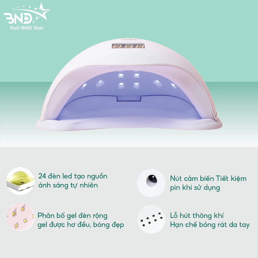 Máy hơ gel SUN 5 UV/LED tem xanh 48W 24 bóng đèn – Máy hơ móng mini dành cho học viên thực hành nail (bảo hành 1 tháng)